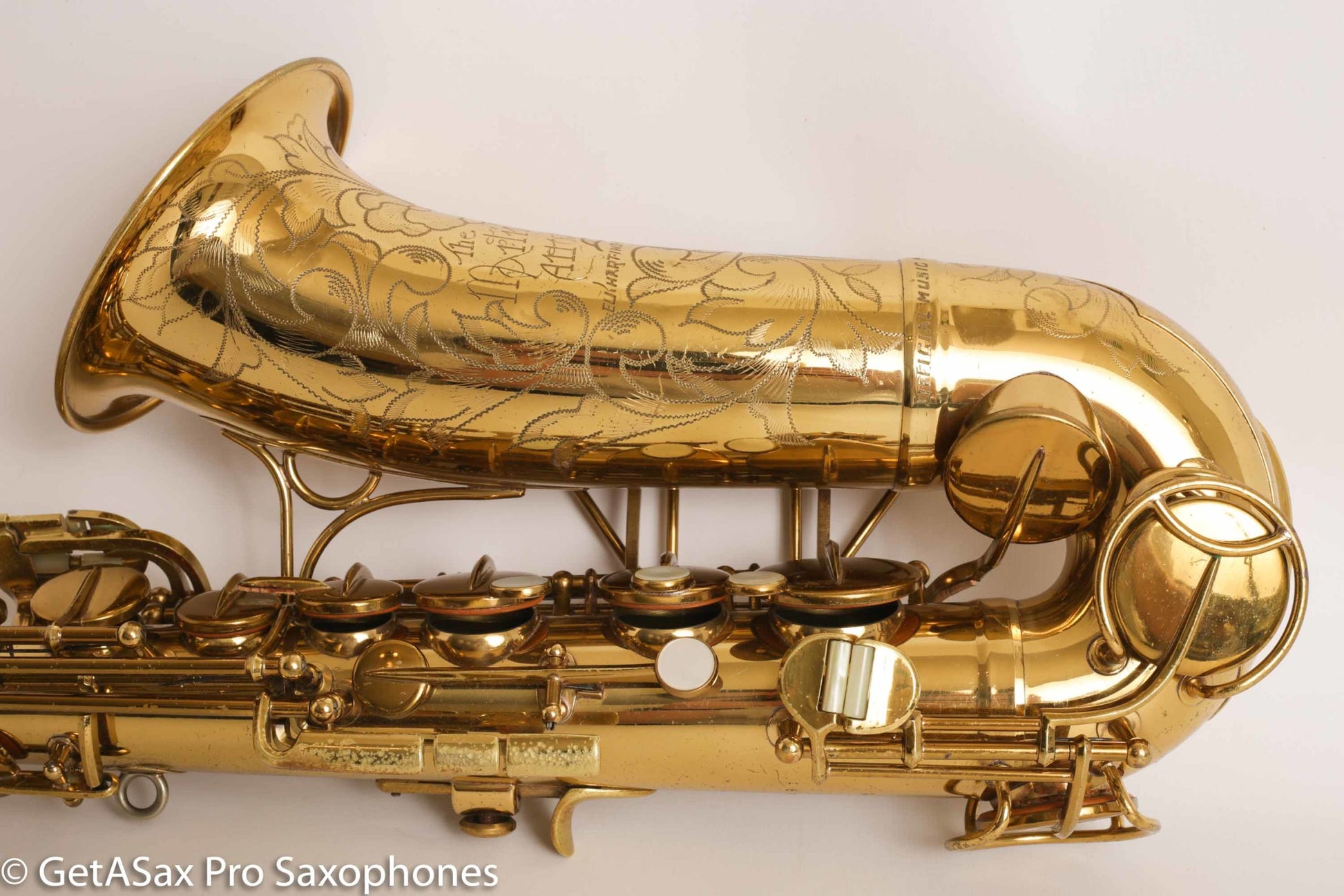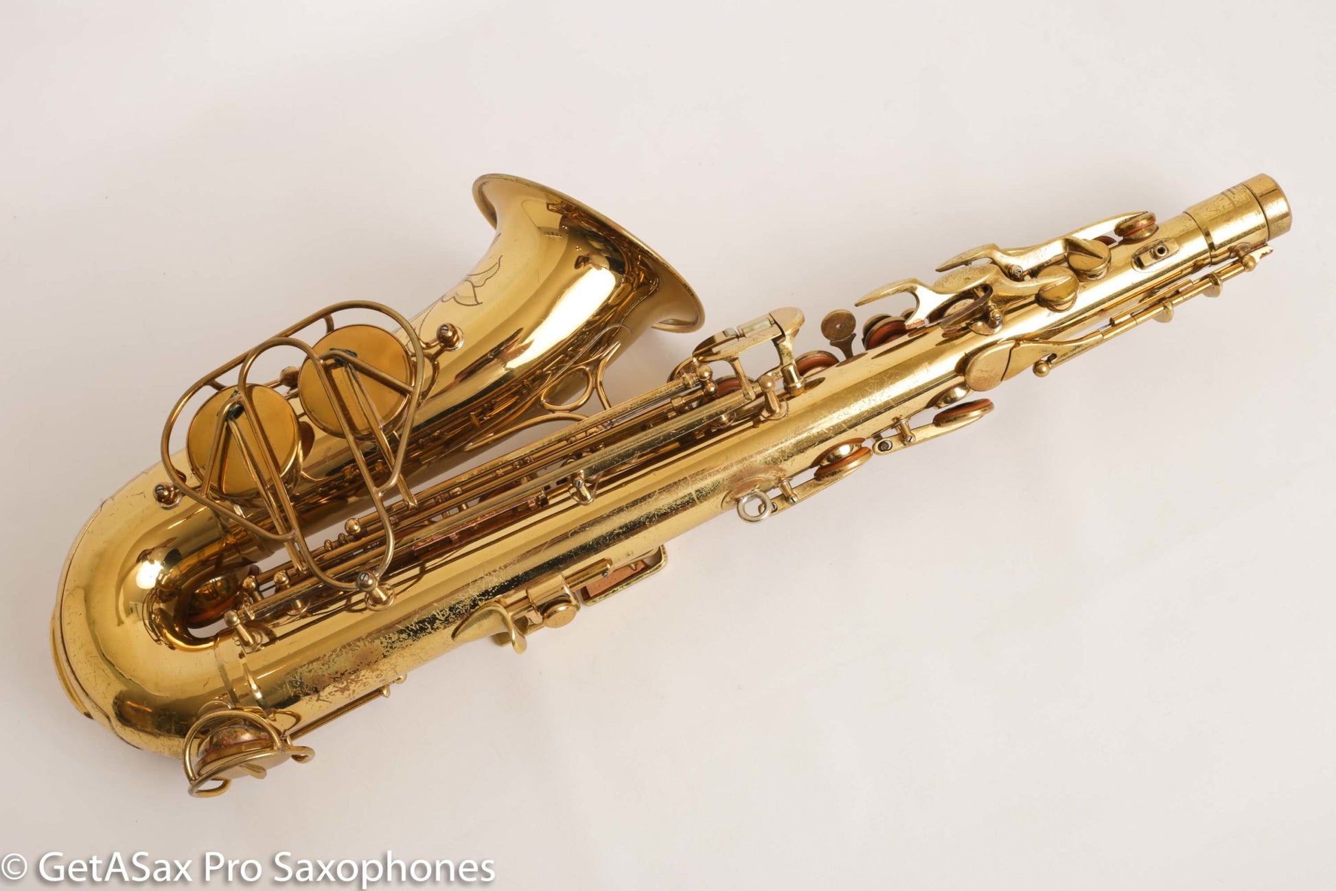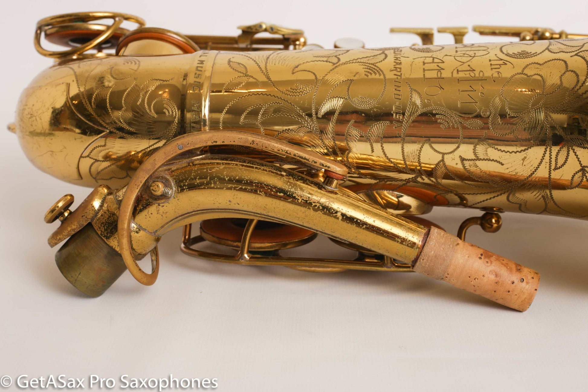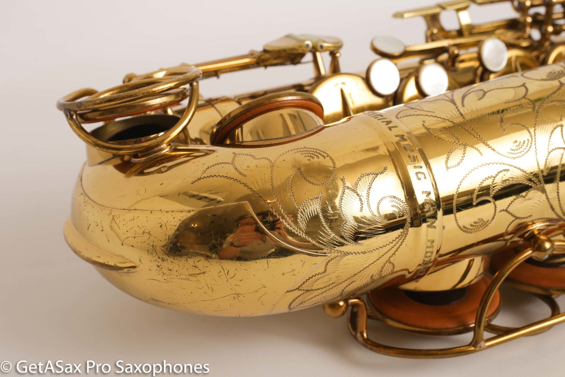 Gorgeous original lacquer Martin Music Man alto saxophone. This is one of my favorite The Martin Alto Committee III’s ever, and is being sold from my personal collection. It was in another collection for many decades before I got it, and it has been cared for very well over the years. The pads aren’t bad, but it’s not freshly overhauled either. It plays well on them. I’d play it for a while and save up for an overhaul before too long, if you want to unlock the full potential.