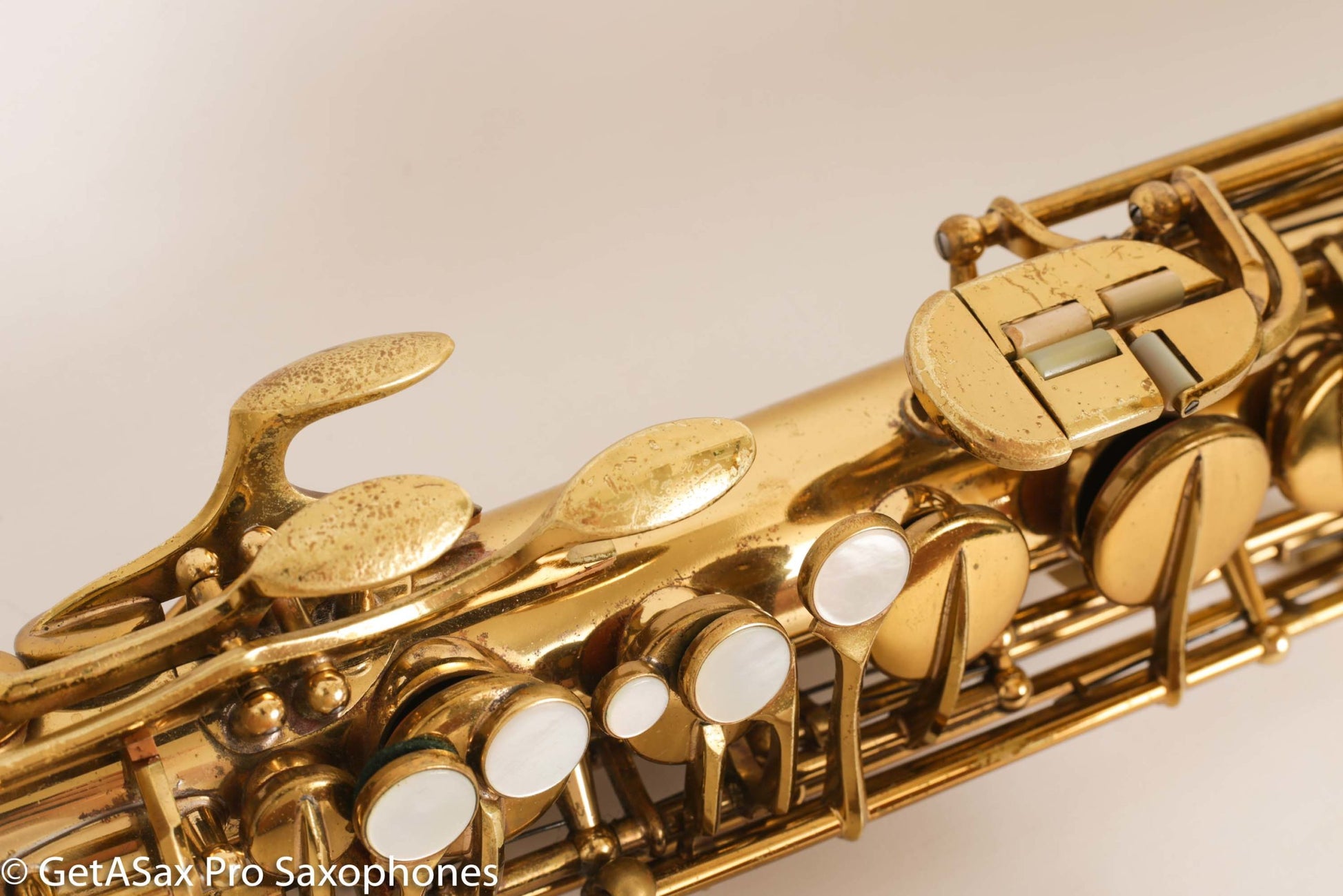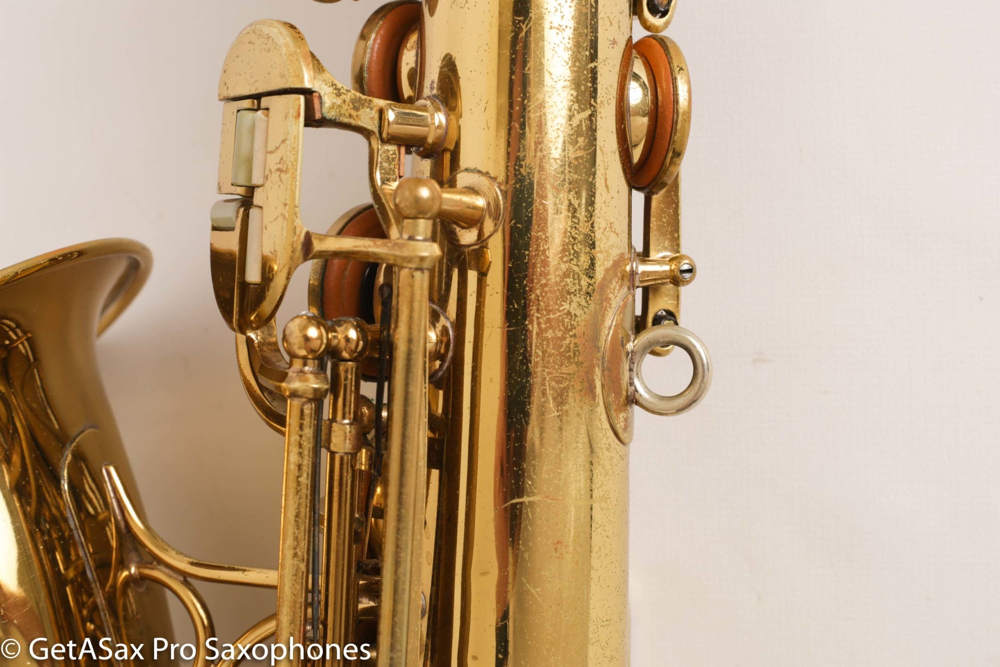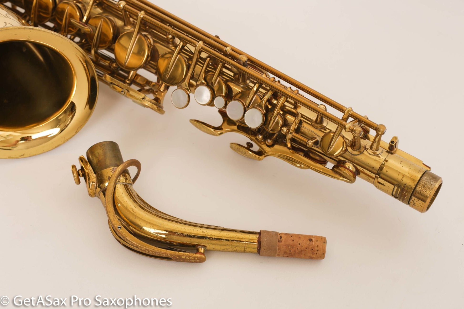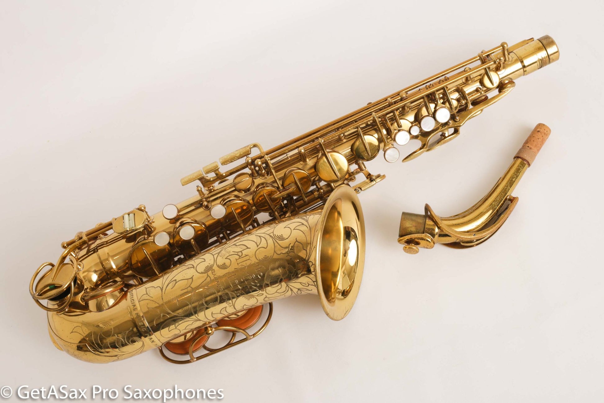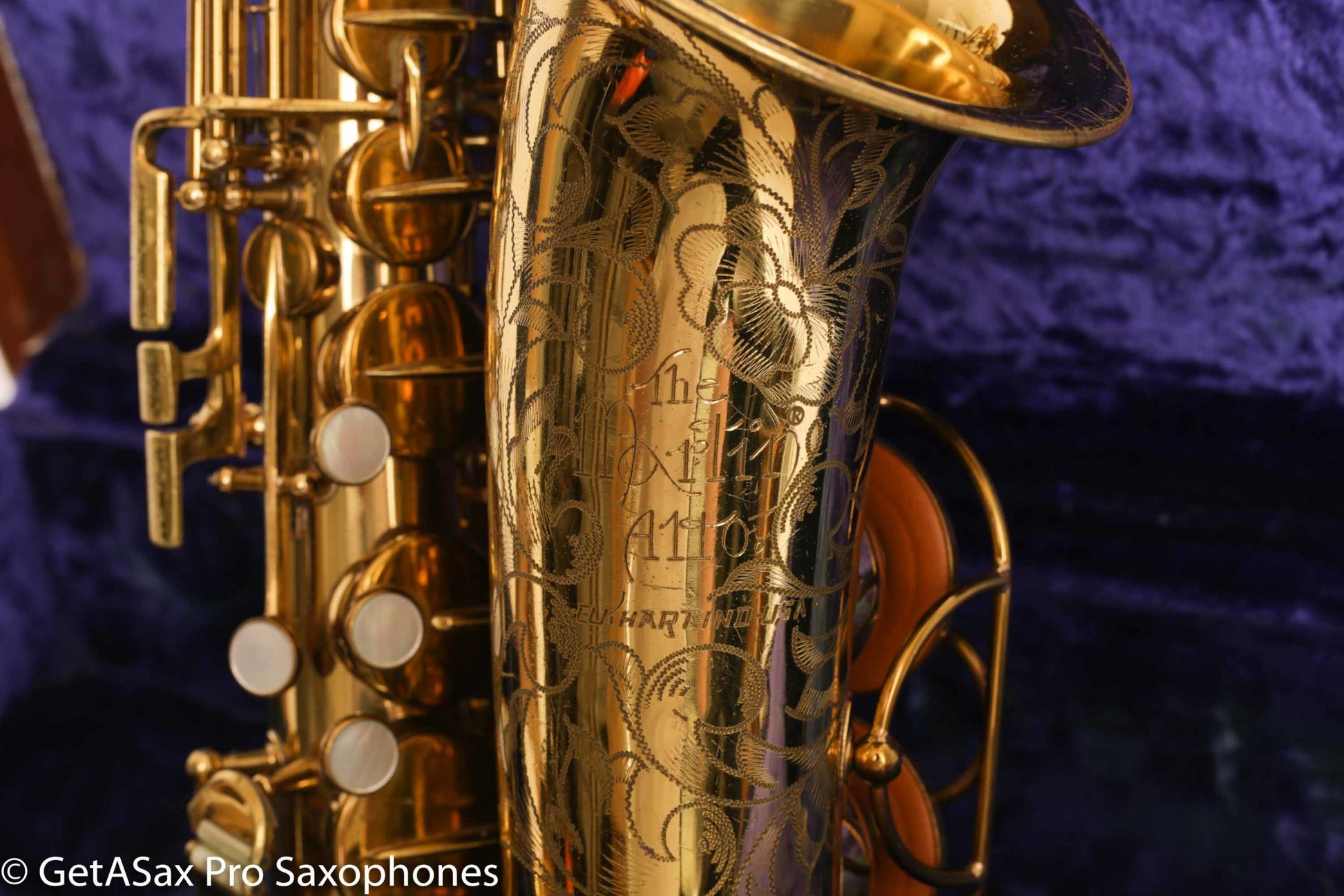Gorgeous original lacquer Martin Music Man alto saxophone. This is one of my favorite The Martin Alto Committee III’s ever, and is being sold from my personal collection. It was in another collection for many decades before I got it, and it has been cared for very well over the years. The pads aren’t bad, but it’s not freshly overhauled either. It plays well on them. I’d play it for a while and save up for an overhaul before too long, if you want to unlock the full potential.