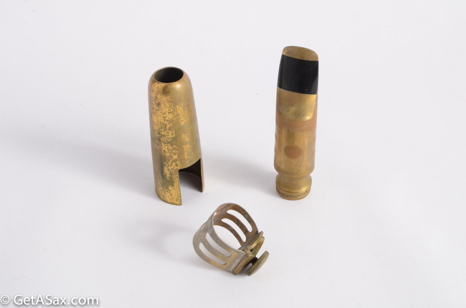 This is a beautiful vintage Otto Link tenor mouthpiece. The model is "Four ****" not to be confused with the tip opening, which is also a 4*, measuring .078". This piece is in very good original condition, and the tip, rails, table etc all look great. The bite plate shows only minor tooth wear. This piece has a dark, wide tone with a large chamber and no baffle. It also includes what look like the original ligature and cap, which is great!