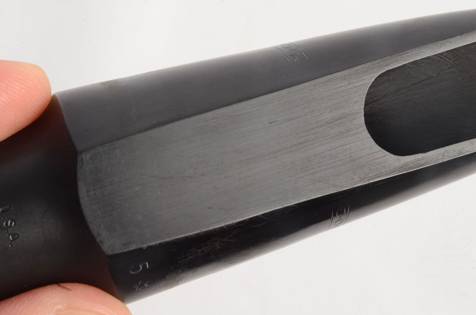 This Otto Link measures .090″ which would be about a 6 tip. So it was probably just barely opened up. It plays more like a 6* or 7 and is more free blowing than a typical tone edge of this era. Great piece for someone who wants a smaller tip that still takes enough air. This is probably early 80’s vintage.