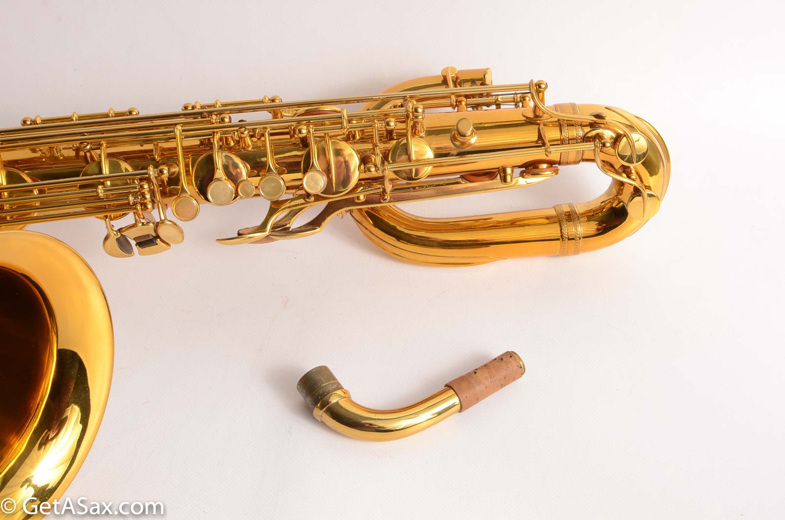 This horn was relacquered for cosmetic reasons, and is the cleanest sort of relacquer that you will see. It came from a player in Hawaii who was probably the original owner, and it is clear that he took excellent care for it. There are literally no past repairs evident. That's just crazy for an 80 year old baritone. I play an original lacquer Radio Improved baritone (22xxx serial, very similar to this), and even my personal horn is not this clean mechanically and structurally. And like my personal Selmer Bari, this horn has the same rich, warm, delicate, pleasant tone that I have found in no other kind of baritone past or present. It is really hard to beat.