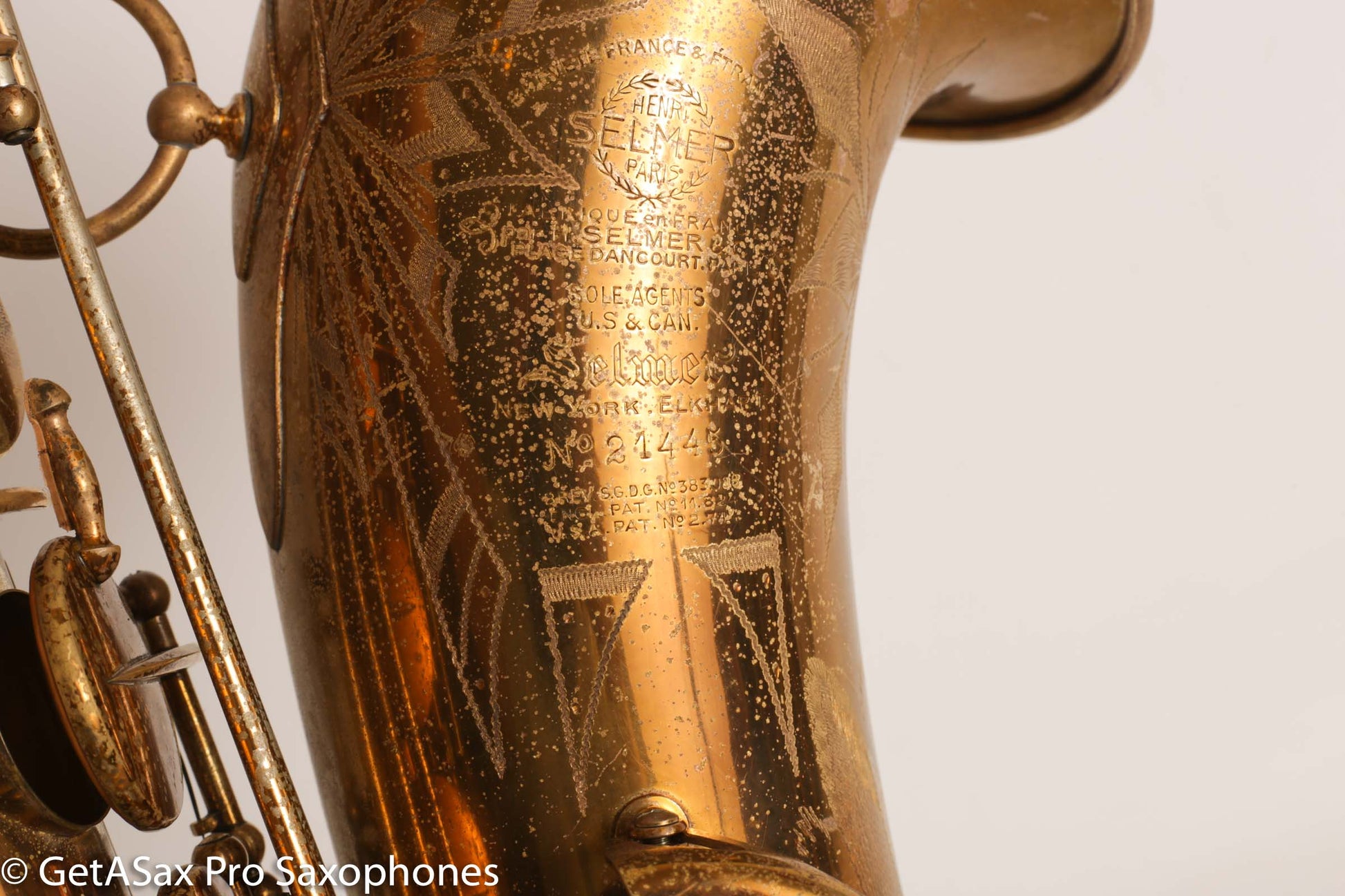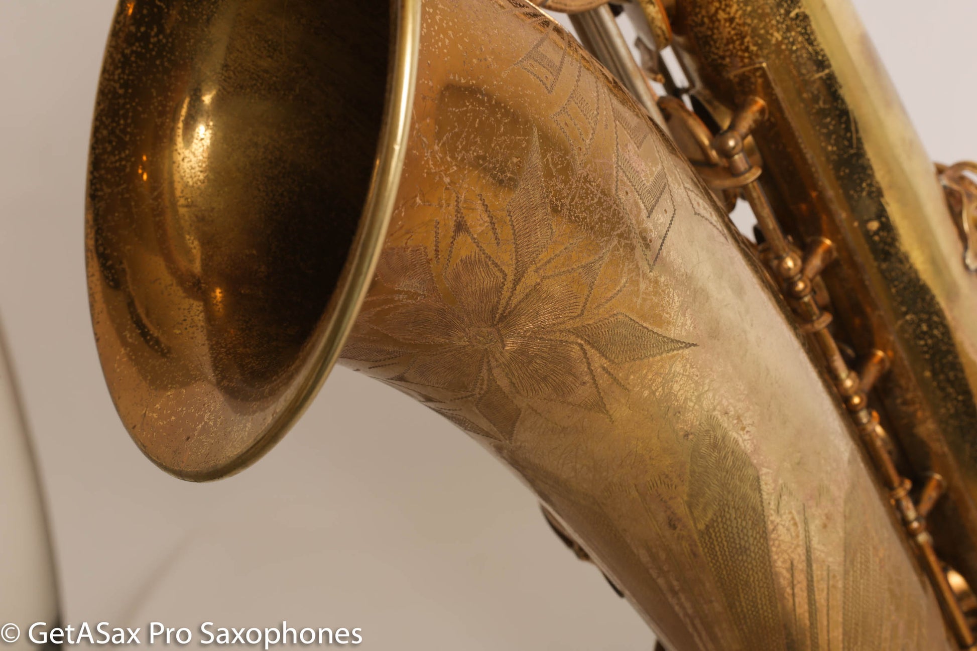 This tenor gets my rare distinction of being an ‘exceptionally fine player’, and it also is an extremely rare and fantastic example of a very early Selmer Balanced Action tenor with an American-engraving pattern that was only used for a short period on a few tenors. I think it’s really great. This horn plays basically like a Balanced Action – warm, velvety, with a lyrical core that is obviously Selmer. But it’s a little more spread and a little darker than a Late Balanced Action, almost like it’s partly Radio Improved (my favorite vintage Selmer tone) and partly BA (my second favorite vintage Selmer tone). But it has the more comfortable BA keywork layout, so it really is a special ‘unicorn’ sort of vintage Selmer that you never see. I’ve seen one other one of these ever, and I don’t think that one was original lacquer. This tenor just got a complete overhaul done through GetASax with Italian leather Pisoni pads, and the nice made in USA reusable slightly domed brass resonators that I love on these horns. You won’t find a nicer BA, and certainly not for this price. Only one available!