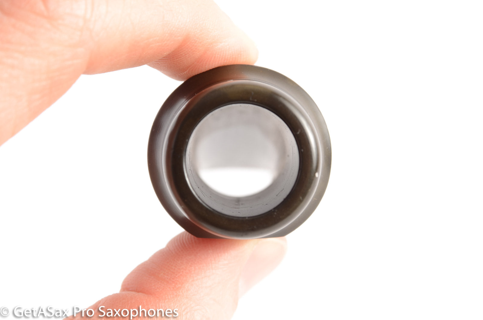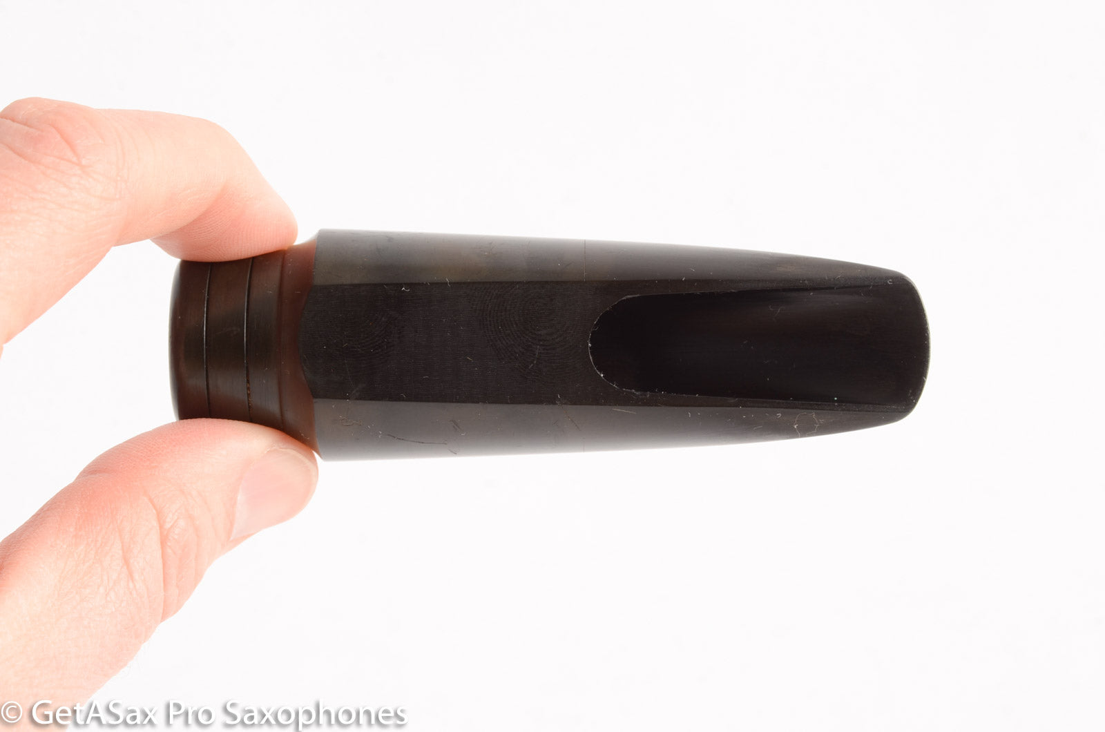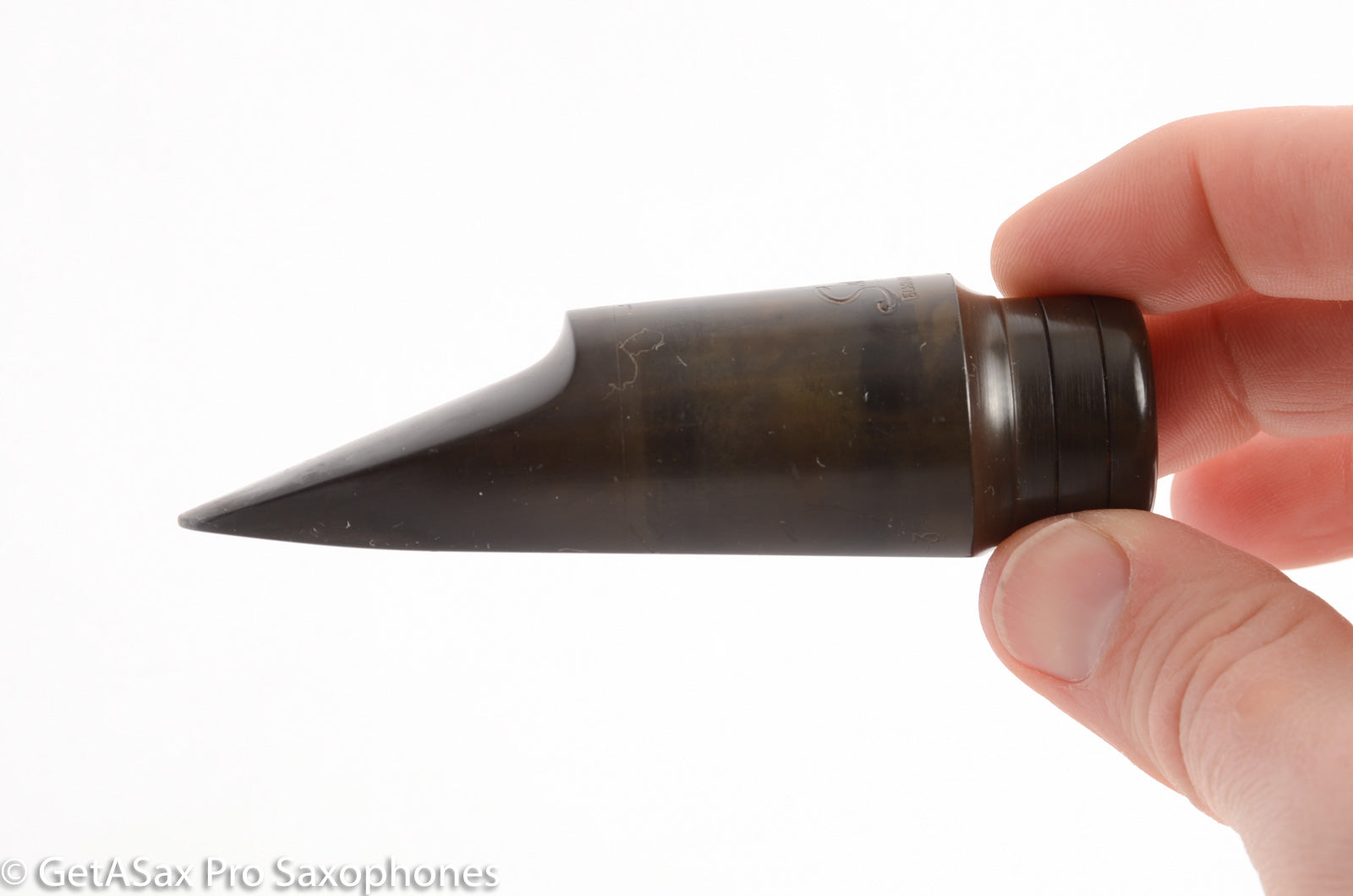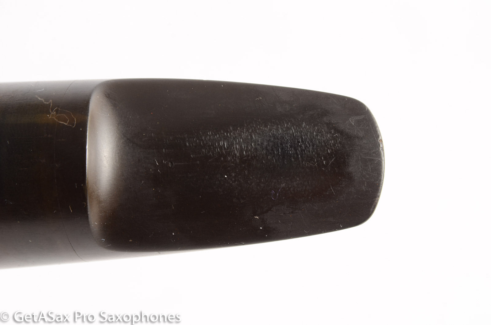 Lightly scooped sidewalls, large chamber, short rollover baffle. Tip opening measures 0.078". This piece has moderate to high resistance, and unusually good projection for this small of a tip opening. Nice denim marks on the table, and good even rails. The tone tends towards dark, but with a buzziness that can provide some tonal flexibility. It would make a great intermediate player piece as is or get it refaced for a budget Dukoff Supersonic clone.