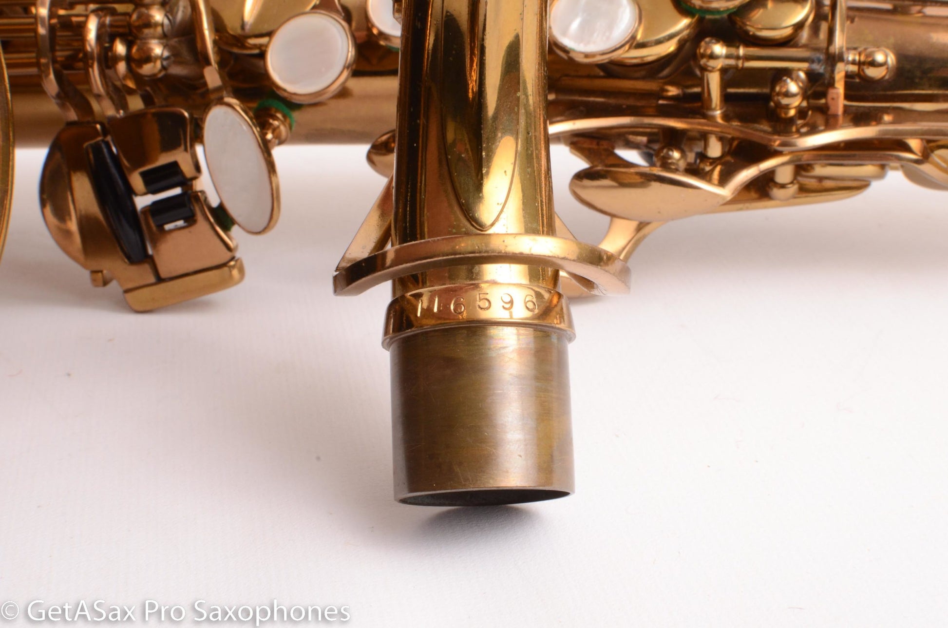 One of the nicest all original VI altos you will see. This has all original pads still intact, and almost all its original lacquer. The 1964 Selmer Mark VI Altos have a big, dark, projecting, complex tenor-like tone that is my favorite tone out of all the Mark VI altos. This one had a dent removed from the back of the body tube which is now gone and didn’t leave much of a mark. Also one foot of the low C keyguard was slightly dented when I got it and I had that removed. Aside from those two small, well-done repairs, it’s in nearly new mechanical condition. Definitely a solid purchase for someone who wants a beautiful, original VI alto in superb condition with original factory setup, and for a reasonable price. Same price as a new Selmer Supreme, but this is a Mark VI!