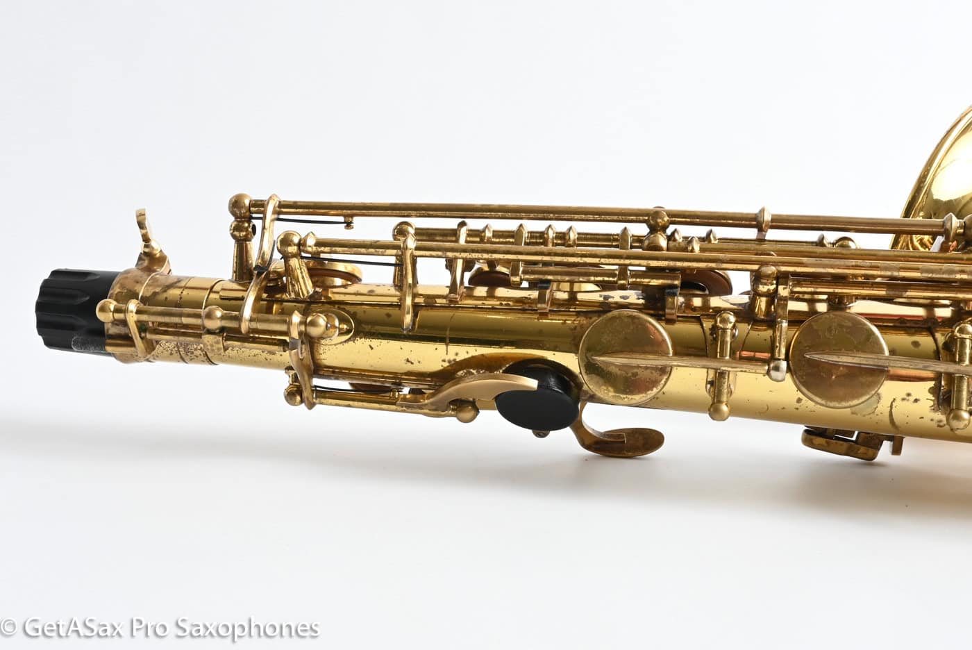 Great playing original lacquer Selmer Mark VI alto with an excellent recent overhaul. This Mark VI does it all with a great tone, very good intonation, and excellent lacquer and cosmetic condition. You won’t need to spend money on it either. Plays effortlessly, and it will also be cheap to maintain. The Mark VI sets the standard in professional saxophones, and you can buy a good VI alto for now quite a bit less than a new Selmer. The VI will hold its value much better by contrast as well, while you play and enjoy it!