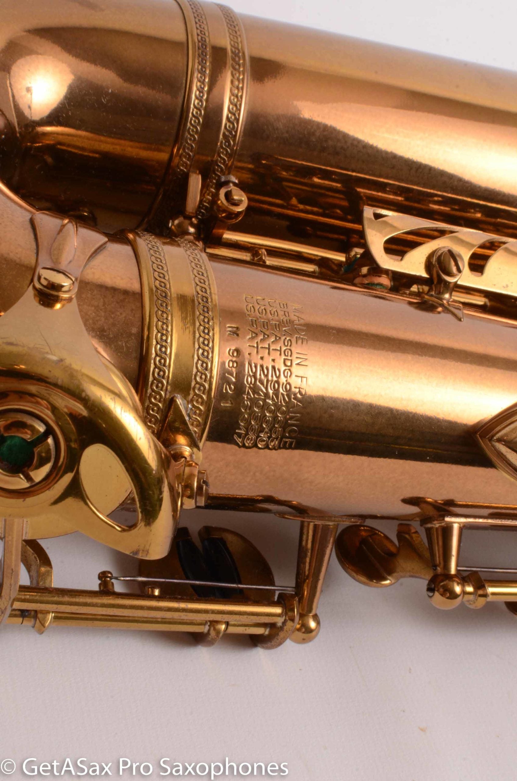This is an absolutely premium Selmer Mark VI alto saxophone with nearly all of its original lacquer intact. It even has original pads from the factory from 1962. You’d be hard-pressed to find a cleaner, more beautiful Mark VI. This has a 5-digit serial, and it is in the serial range that is my favorite for tone. These late 5-digit altos have a dark, powerful, tenor-like tone that is bigger and more complex than a typical VI. They’re among the best altos you’ll find! The ‘long bow’ tuning on this one is totally fine, with no problem on low B etc. using a Meyer.
