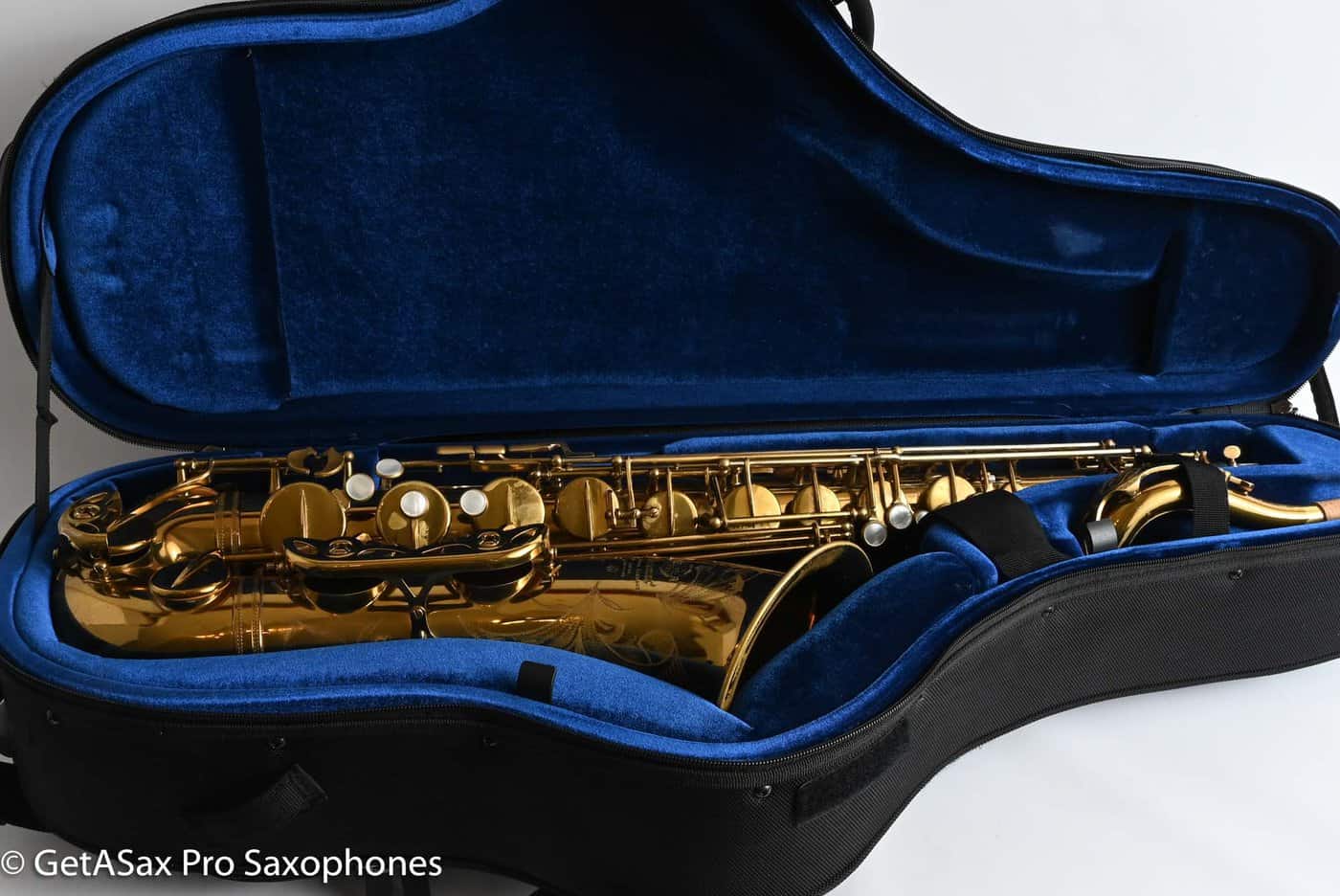 The tone is dark, fairly focused, and powerful, and reminds me of a late 5-digit tenor sound wise. The overhaul feels great under the fingers — dry and snappy like a brand new horn — and the low Bb pops out effortlessly even at low volumes with plenty of saturation. It’s a joy to play a nice Mark VI like this with the complete overhaul done. It’s the closest to playing a brand new one that you can get, because the overhaul gets it back to mechanically near new condition in terms of pad seal and the feel under the fingers. It includes the newish ProTec case, or you can get it in the original grey samsonite style zippered Selmer case, or you can swap the ProTec for a BAM Classic which will protect it really well in shipping. Only one available!