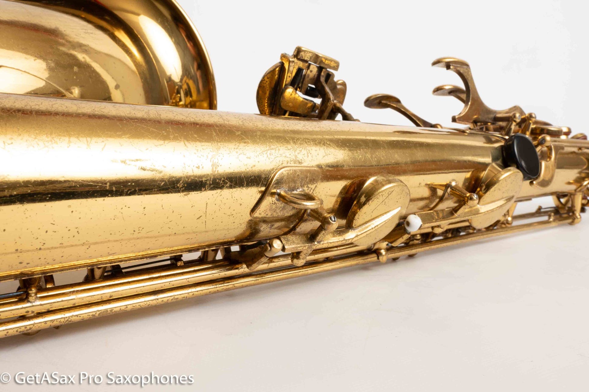 Fantastic deal on a great playing original lacquer Selmer Mark VI tenor with American engraving. This horn is a fantastic value, beacause it has good pads already and plays great, so you don’t need to overhaul it, AND it’s in beautiful cosmetic condition as well with very minimal past repairs. It just got tuned up before being listed, and it really has a great tone – medium between bright and dark, good projection, and a lot of complexity. It feels great under the fingers and is just a very good tenor overall. Watch the video on HD for the best sound quality. Only one available!