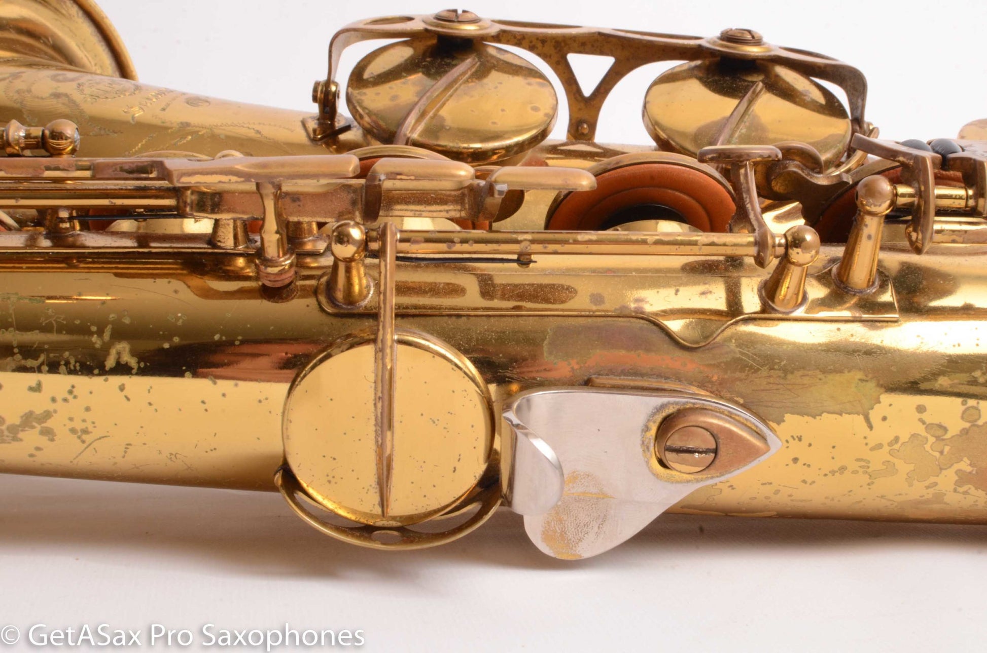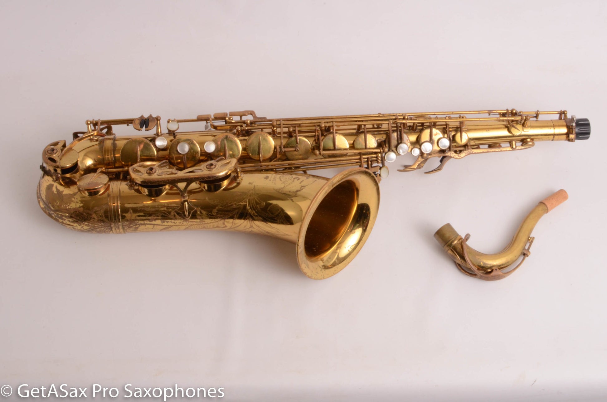 Great deal on an original lacquer Selmer Mark VI Tenor for the price of a new Yamaha or Taiwanese horn. How can you beat that? The later serial Mark VI tenors have a ton of power and a fat, complex, punchy tone that cuts through a band with ease. You get the Selmer Paris build quality, the Mark VI tone, the beauty of American-engraving, and generally a satisfying, quality tenor for really not that much money. The pads on this one are older, and it plays on them, but would do better with a repad pretty soon. It’s priced to be within reach of a player going for his or her tenor that can be kept and played as long as you want to keep it. It will only go up in value.