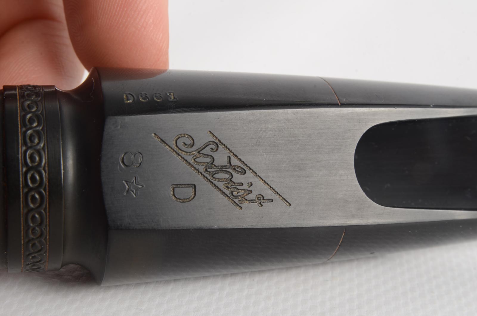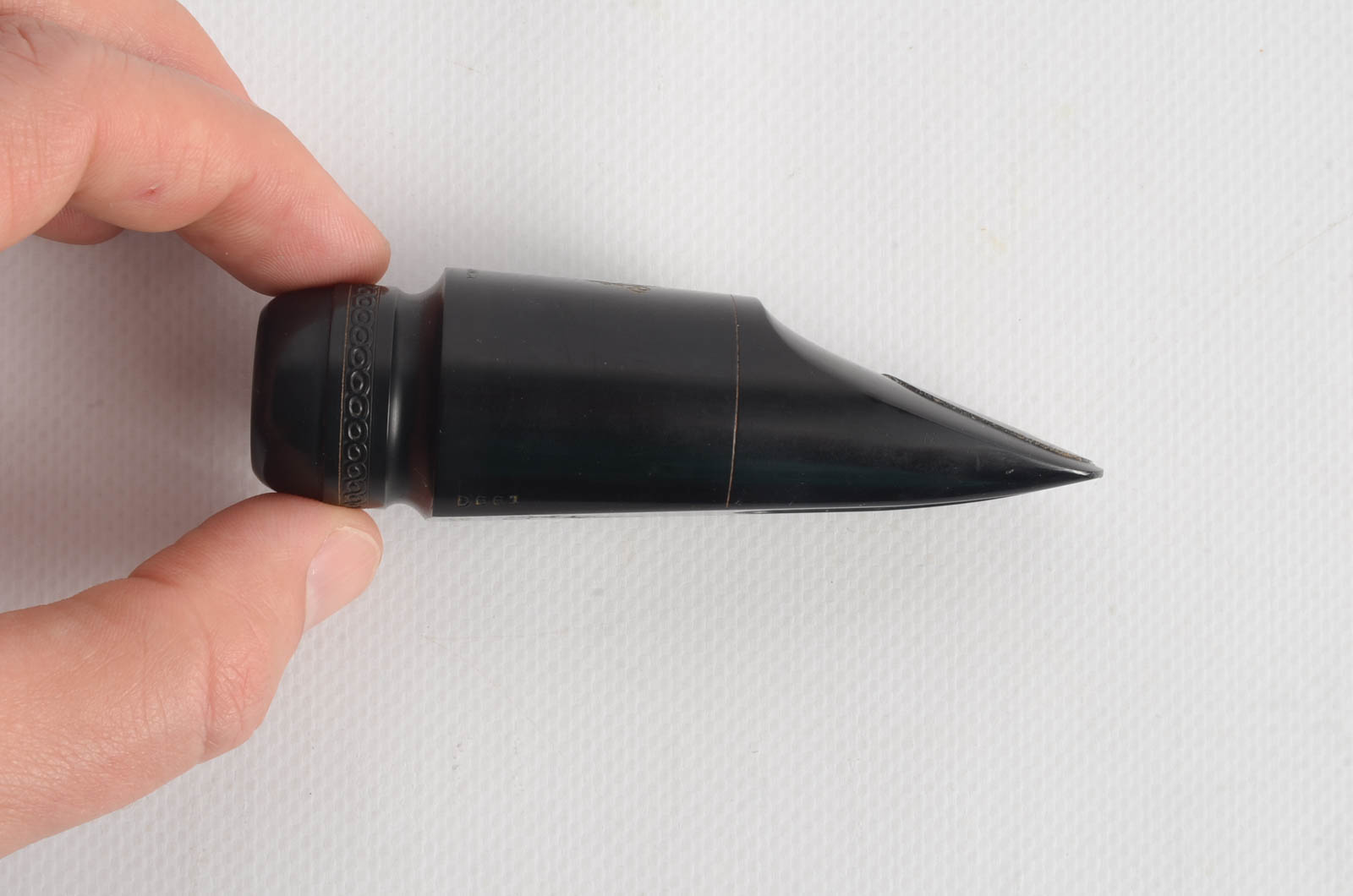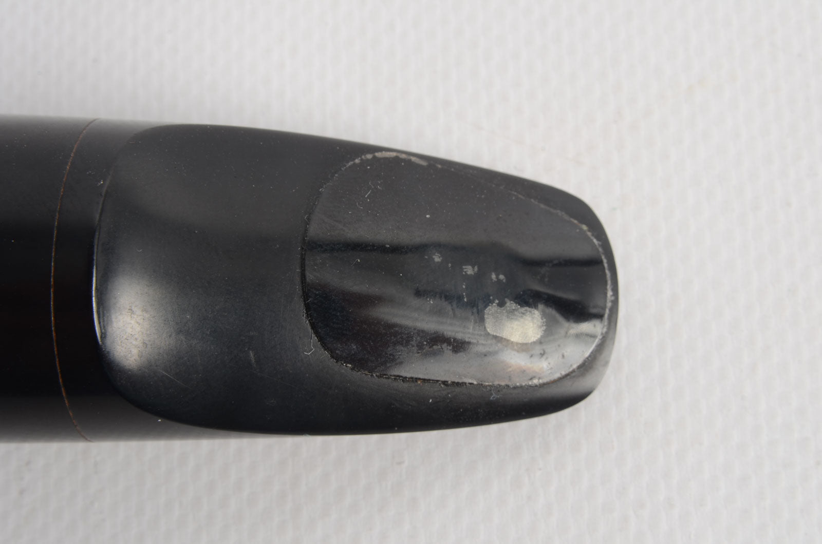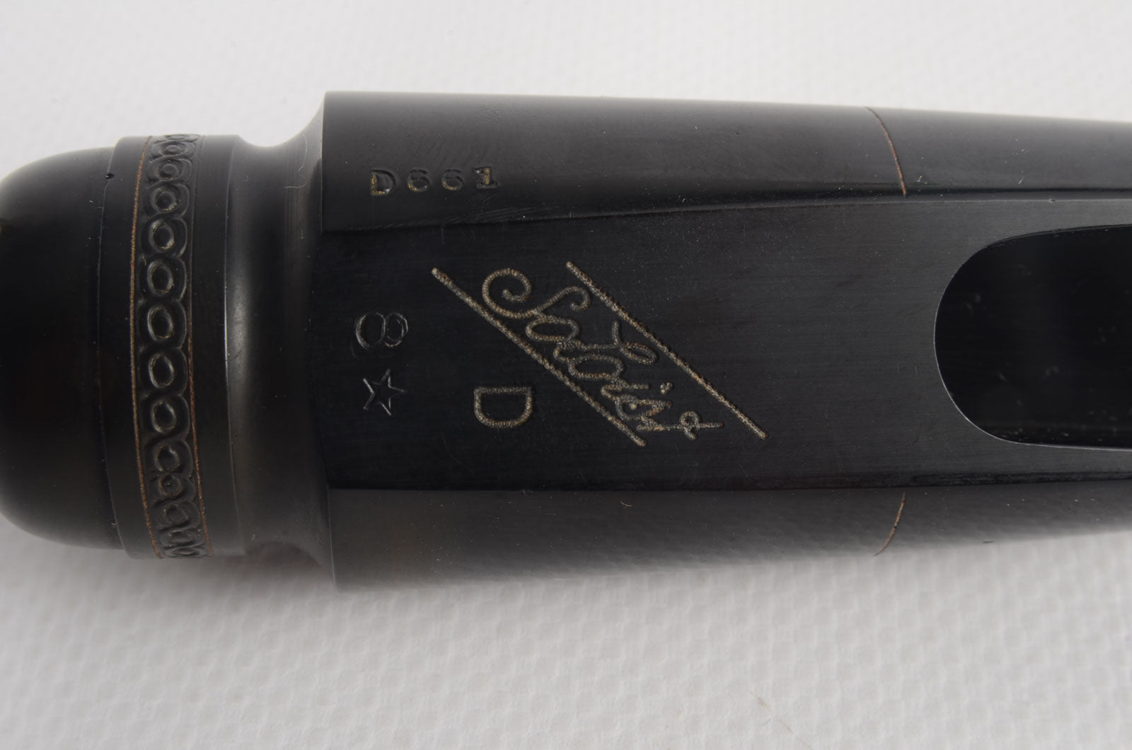 This is a Selmer Short Shank 8* refaced tenor saxophone mouthpiece. This piece was refaced by Aaron Drake. The tip opening measures at 0.118. There is some light wear from age, but nothing that will affect playability.