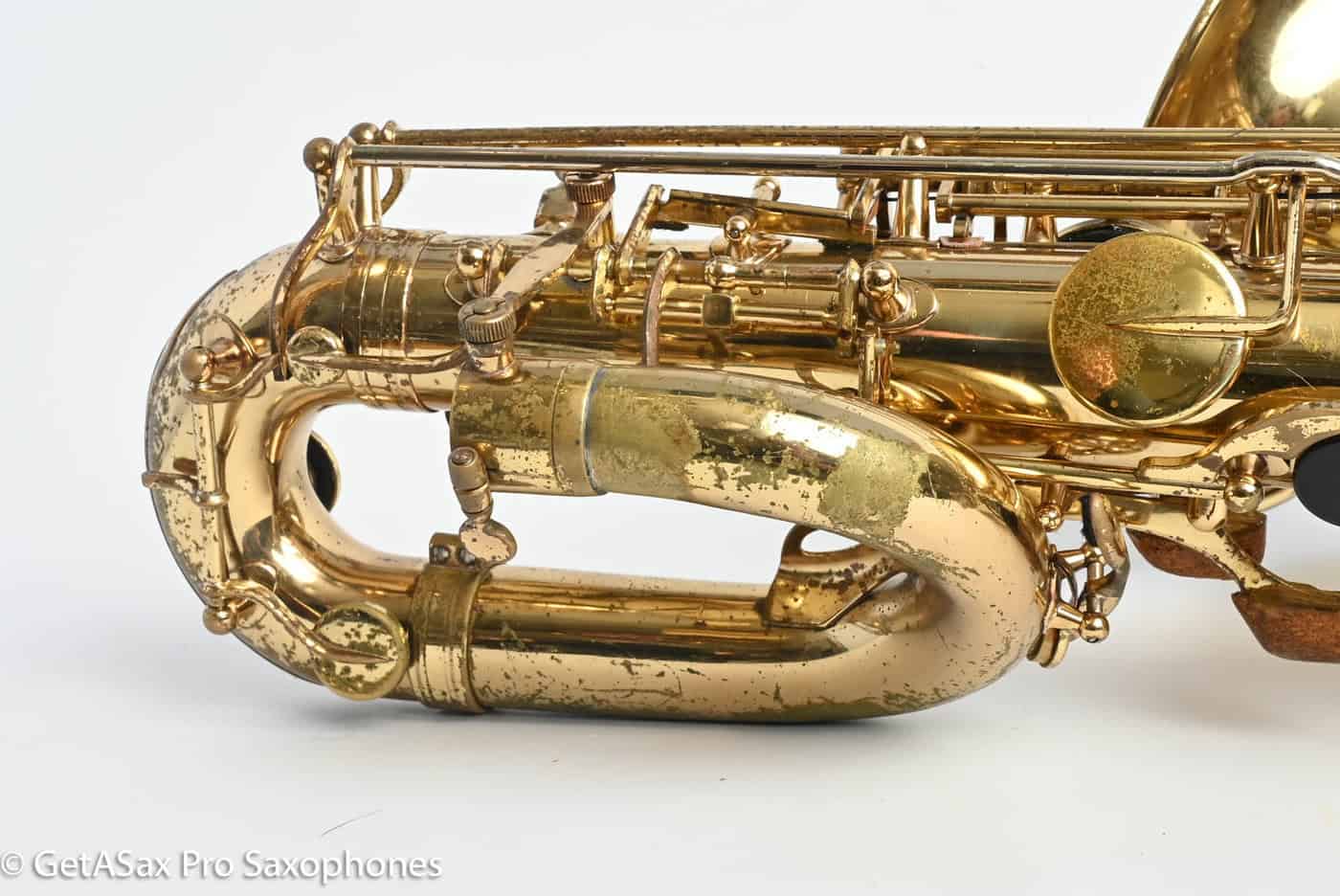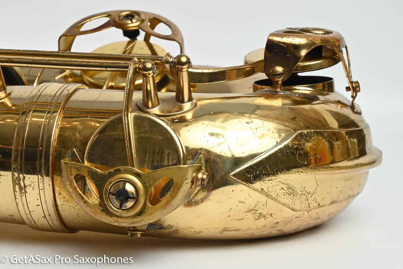 This is a great deal on a Selmer Paris Super Action 80 Series 1 baritone saxophone with original lacquer and good pads. It has an overhaul midway through its usable life, and it seals well and plays great with black kangaroo skin pads and hollywood resonators. It comes in a nice ProTec baritone case that will protect it well in shipping. It also includes a special order ($500-800) Paraschos wood neck (looks like rosewood to me) that gives you a darker, more classical leaning tone and also tunes as well as the original neck on the horn. Those are not cheap, and it’s really cool to get the second, completely different baritone tone from the second neck. You’ve got your fair share of honest wear from playing on this horn. It was owned by a pro saxophone player with a classical background and this horn got him through school performing on baritone. A new Selmer Paris baritone will run you $15959 plus tax as of today, and this horn is less than a third of the price. The series 1 is actually built better than the modern Selmer Paris, as it has keys made in France and pivot screws that work like they were supposed to (this is a whole can of worms that I’m not going to get into now, but tldr, the Series 1 is the best built modern Selmer). If you’re not needing a perfect horn and you want a top quality baritone that is the price of a Yamaha 52 but is a Selmer Paris, with that lyrical, medium-dark French core to the tone and a big fat low register, excellent intonation, and Selmer keywork, it would be hard to beat this one for the price. Plan on spending at least a couple of hundred dollars every 6 months on replacing some pads or doing minor tune ups and you won’t be disappointed. It’s a solid horn and priced to sell!