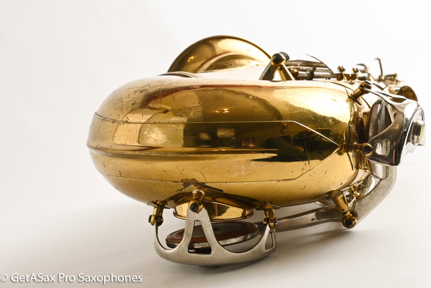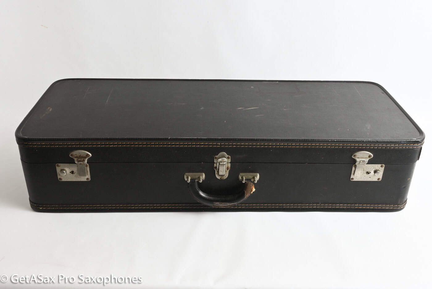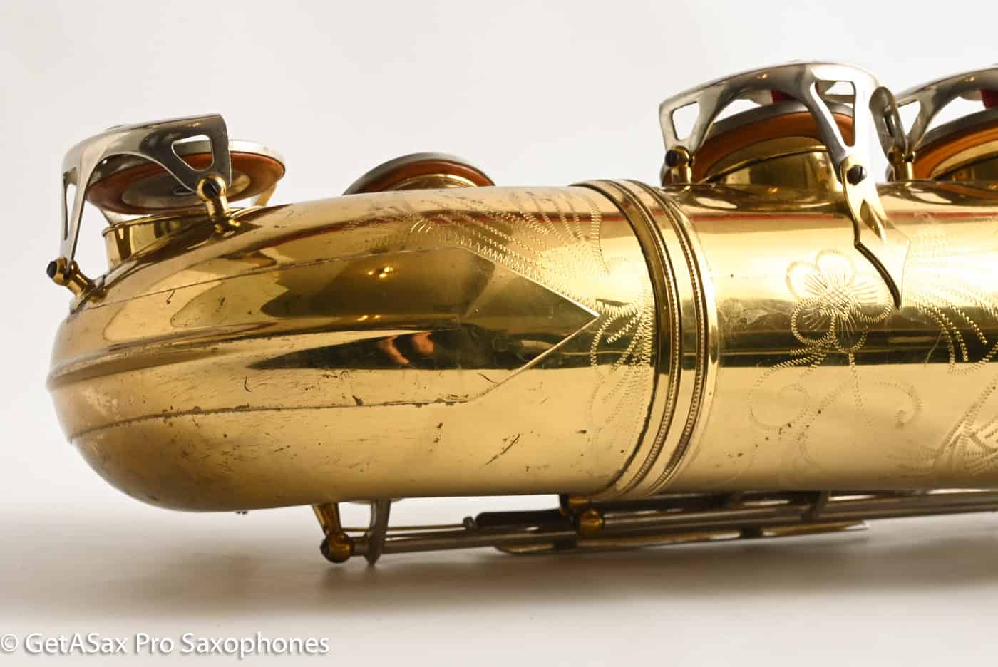 Here is a great deal on one of the best vintage pro tenor saxophones, the SML Gold Medal 1. Besides being one of the most fun to play, it’s also one that is also still quite affordable, even in good original lacquer condition like this! This one is particularly a good deal. It’s 100% the same as a normal SML Gold Medal, but since it says Pichard on the bell (the name of the music store that sold it) you get about an extra $1k off the price. SML Stencils are the same as their normal models, so the only difference is what it says on the bell. The pads are original, so you’ll need to plan on an overhaul. It had some dents removed from the back of the bow, and is nice and clean and dent free now. The original neck is in excellent undamaged condition. If you want to get a Conn/Selmer hybrid tone with surprisingly comfortable keywork, SML is just about your only option. I have a Gold Medal 1 and a Coleman Hawkins Special SML myself, and I think they are at least twice as good players as the price would suggest.