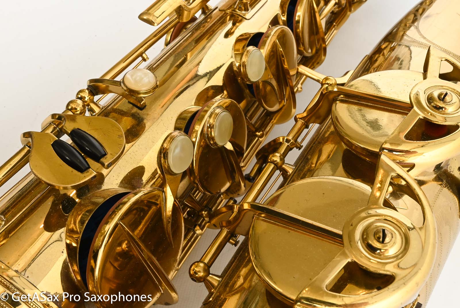 This particular example is both almost new looking, and also has already had an expensive complete overhaul done on it by Lee Kramka at Saxworx in SFO. Lee does excellent work and is the go-to guy in the Bay Area. The horn comes in a ProTec contoured XL case which is the best case for an SML like this (known for its large bell). You'd be hard-pressed to find a nicer SML. The only thing weird about it is that it never got the SML bell stamp, for some odd reason