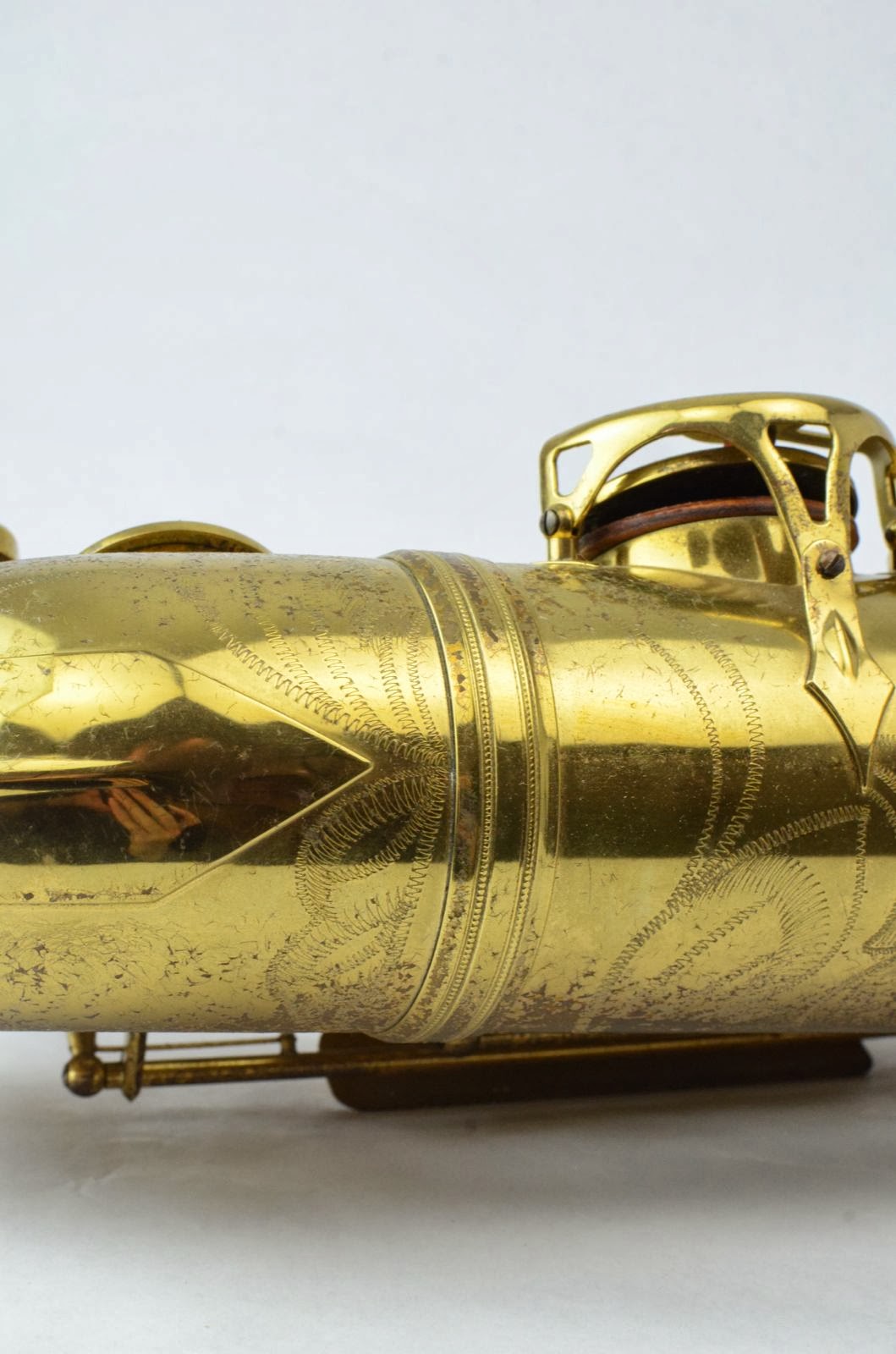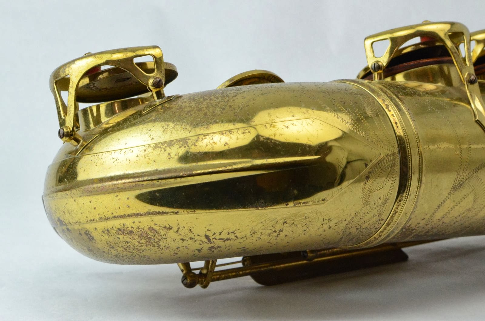 This is a clean, store display model Lucerne stencil SML tenor saxophone. It is a Gold Medal model with straight tone holes rather than rolled (which is actually better for you because your repair guy will be much better at working on the horn down the road). It hung on the wall of a distributor's display room for something like 30 years, apparently never having been played for any length of time. The lacquer had gotten mottled looking from sitting out, so I just had this horn fully overhauled, and it is now bare brass, no lacquer, and it looks gorgeous. The brass will of course get darker and patina as you play this horn. It plays GREAT with a huge voice that is dark, full, and powerful, while remaining focused and centered, like a typical French-made saxophone (think Selmer but fatter and darker). The overhaul was done very well, with reusable screw in brass resonators that are idea for this horn. Whoever gets this is going to be very pleased!