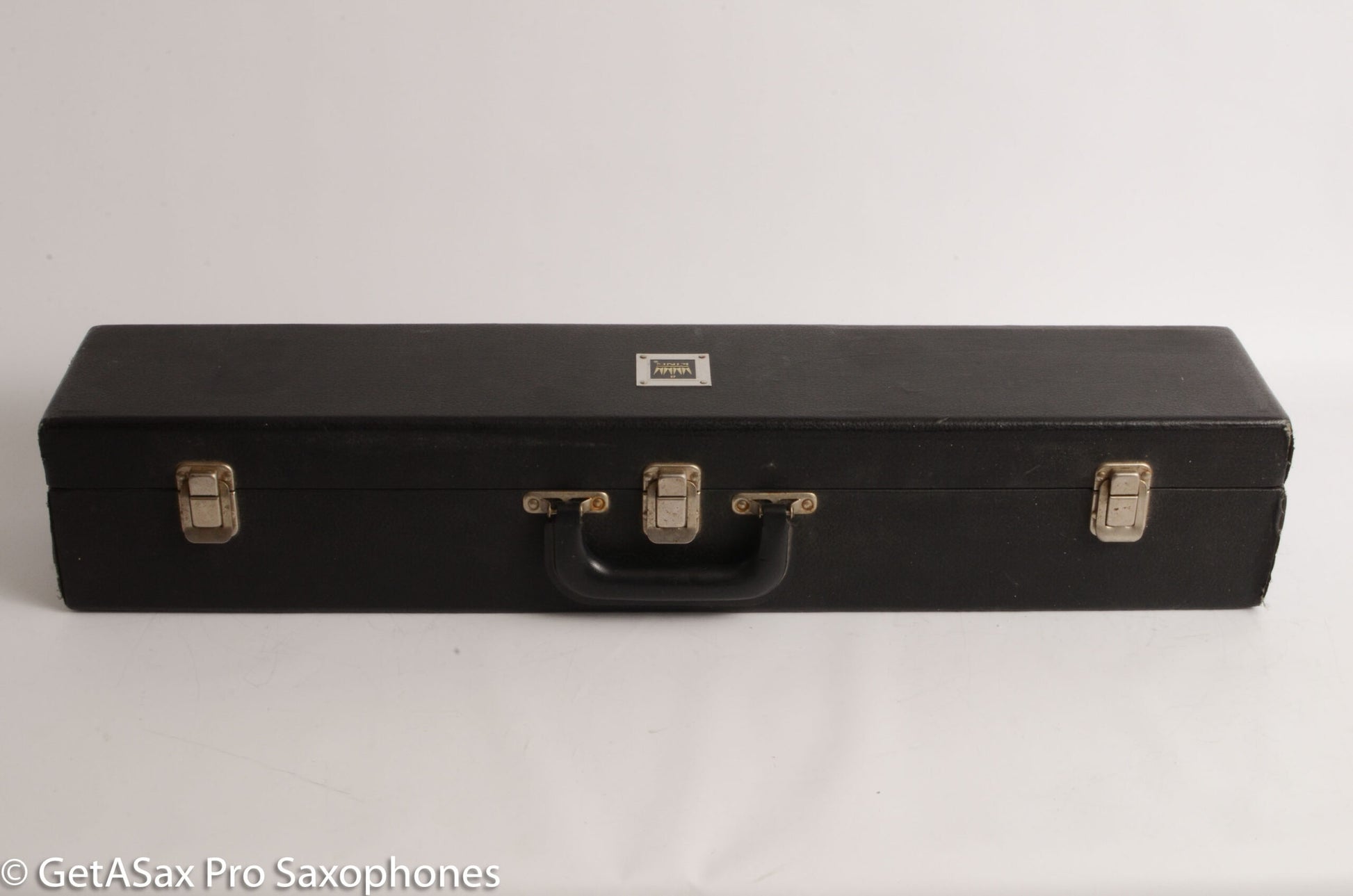 This is a gorgeous example of an SML soprano saxophone with original lacquer. It’s a Gold Medal 2, meaning it has straight tone holes, but it has nearly all of the other features of a Gold Medal 1 and is practically the same. Many of these were distributed by King and have the King name on the bell along with the Marigaux (The ‘M’ in SML). I have the matching tenor to this soprano also for sale now. These are some of the best values around in vintage saxophones today. The SML saxophones play basically like a Conn/Selmer hybrid, with a bigger, darker tone like a Conn, but with easy modern feeling keywork like a Selmer, and a a bit of French saxophone in the mix. If you want a soprano that isn’t reedy and nasal, but tends towards a wider operatic sound, even in the upper register, then Conn, Martin, and SML are your main options, and SML is the most modern feeling under the fingers of the three.