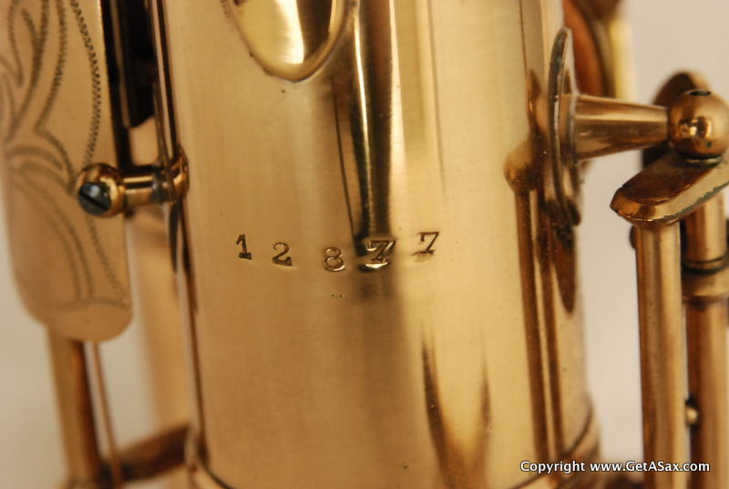 This is a pristine, collector-grade SML Rev D alto, virtually like new in the original case. This horn is gorgeous with no past repairs. It has almost all original pads, and it still plays well with a big, warm, projecting tone. The tone on this horn is dark, complex, lyrical and French, but with a strong 30's Conn influence mixed in. Intonation is good, ergonomics are good. If you play a lot, it will need a repad in a year or so because the old pads will wear out. But if you want it to keep and play occasionally, it will be good for longer.