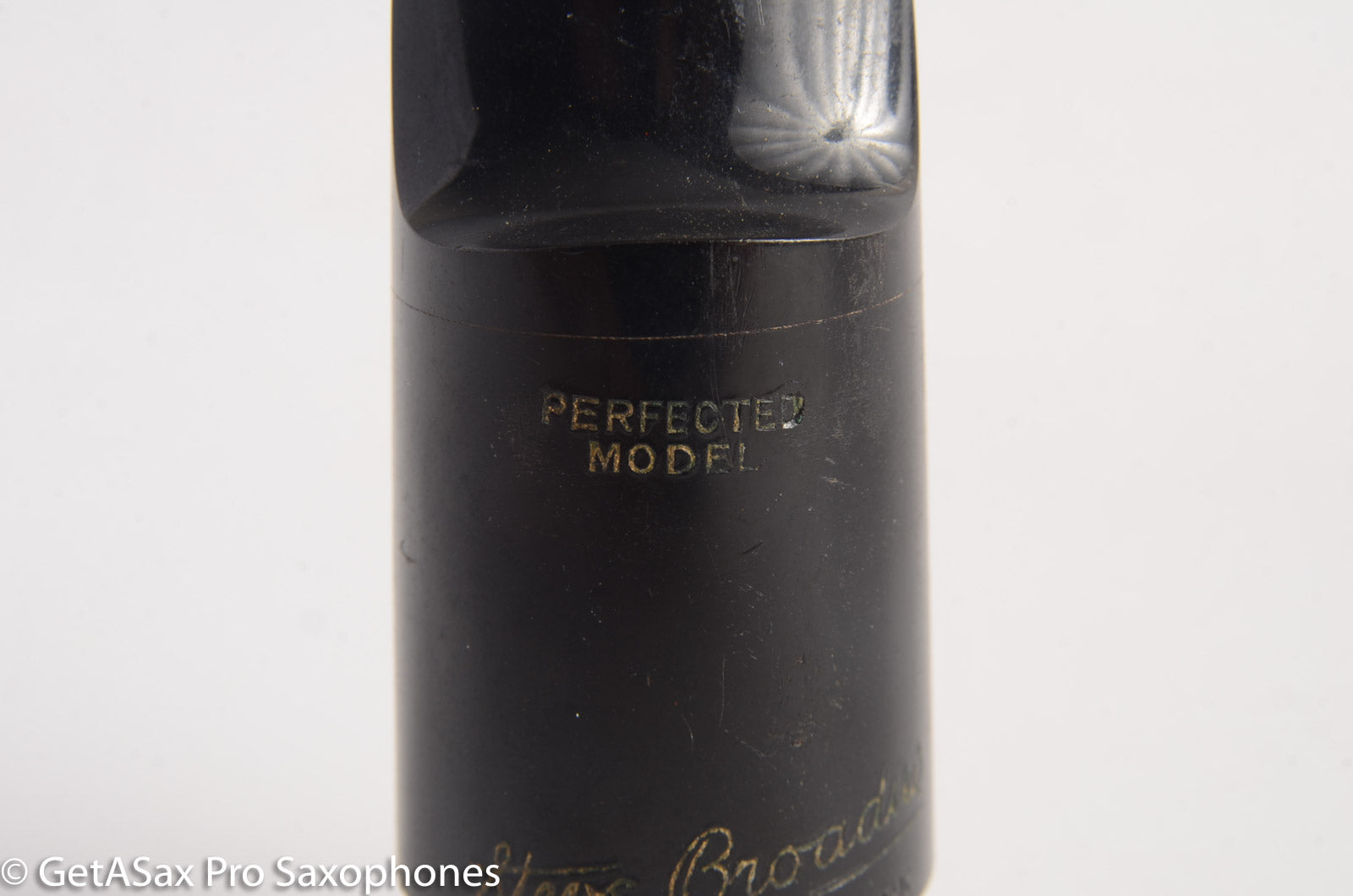 Steve Broadus mouthpieces are high quality and under-appreciated today, mainly because they didn't do enough marketing in the mid-20th-century, and because they mostly made smaller tip openings. This is well made though and has high-quality materials and design. It should probably be refaced unless you like very small tip openings. It has curved sidewalls, large chamber like a Link Reso Chamber, mild rollover baffle. Tip opening measures 0.058". With a normal reed, this is thin and pinches off due to the very small tip opening, but with a harder reed, it has nice resistance and a lush dark tone, but still not a whole lot of projection. An interesting piece for west coast style combo work or a starting point for a modern reface.