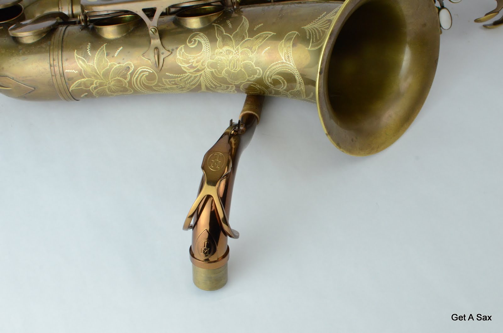 The pad work is very good, as expected, and this is VERY IMPORTANT to the end result on any saxophone. Randy spends most of his time these days setting these horns up. This job amounts to something close to a full overhaul in most cases, and it leaves the horn in truly top playing condition. Randy tells me that each of these fully American-assembled saxophones gets on average 23 hours of bench time at TenorMadness. This includes not only a full pad job, but also fitting all of the keys and making sure that the tone holes are level. The detail-oriented key fitting that these horns have is what you only normally get on full mechanical overhauls. Having perfectly fit keys is what makes these horns hold up well over time and need less adjustment down the road. The bell is also soldered to the bow, like an American-assembled Mark VI or SBA. I should also mention that this horn is custom hand-engraved by Sherry Huntley of Artistic Engraving, which adds beauty and value down the road.