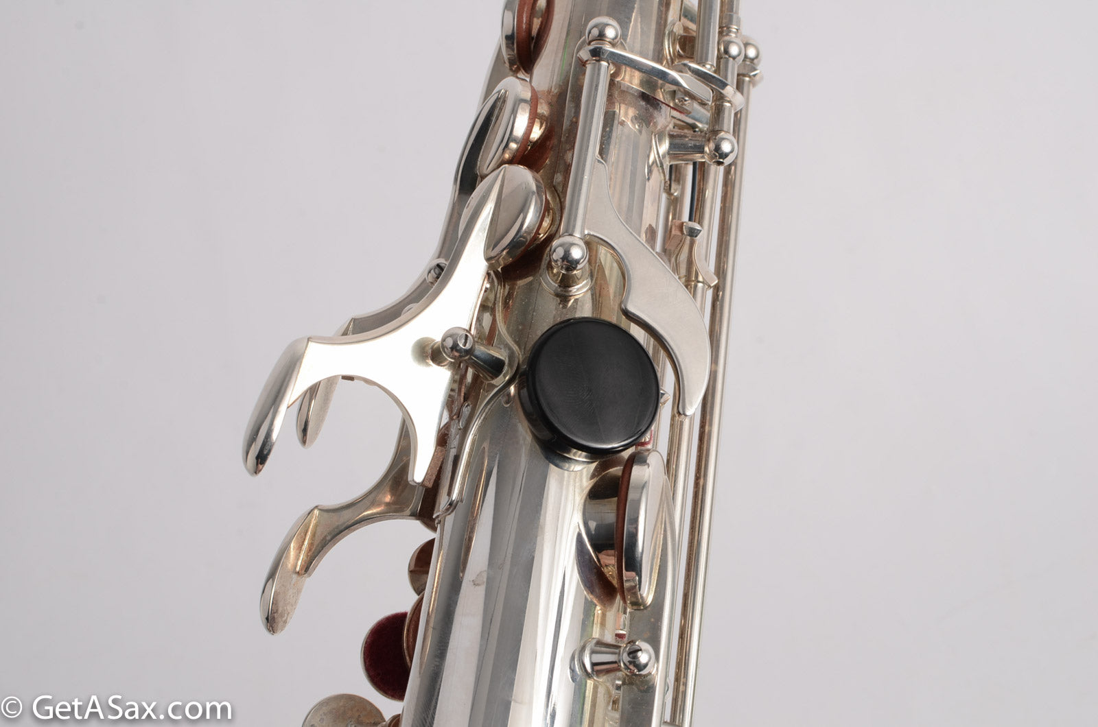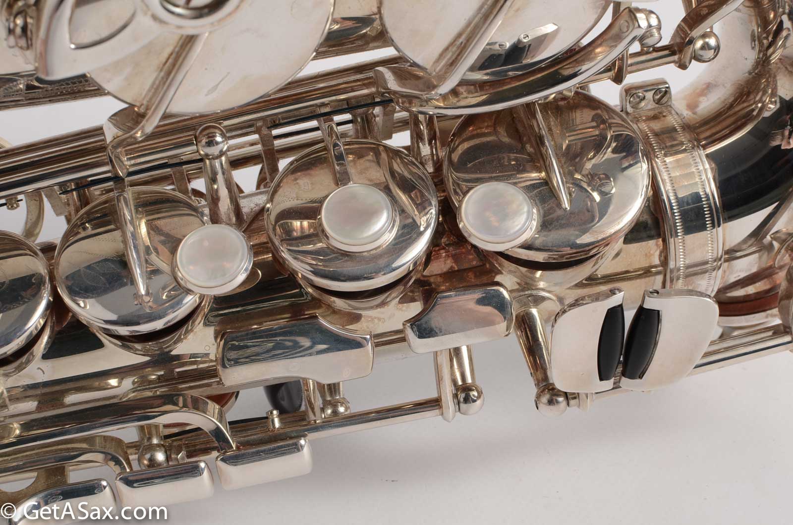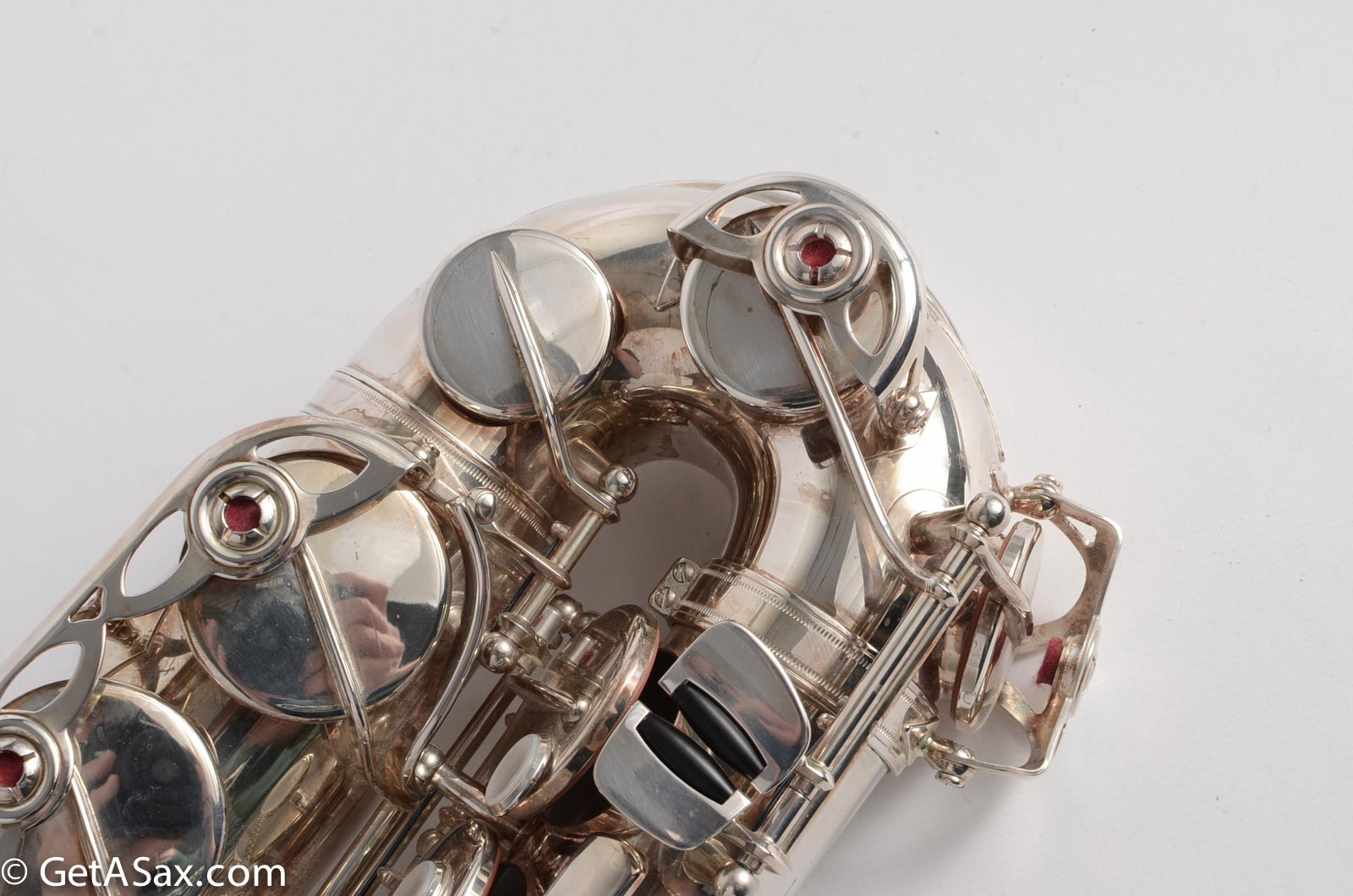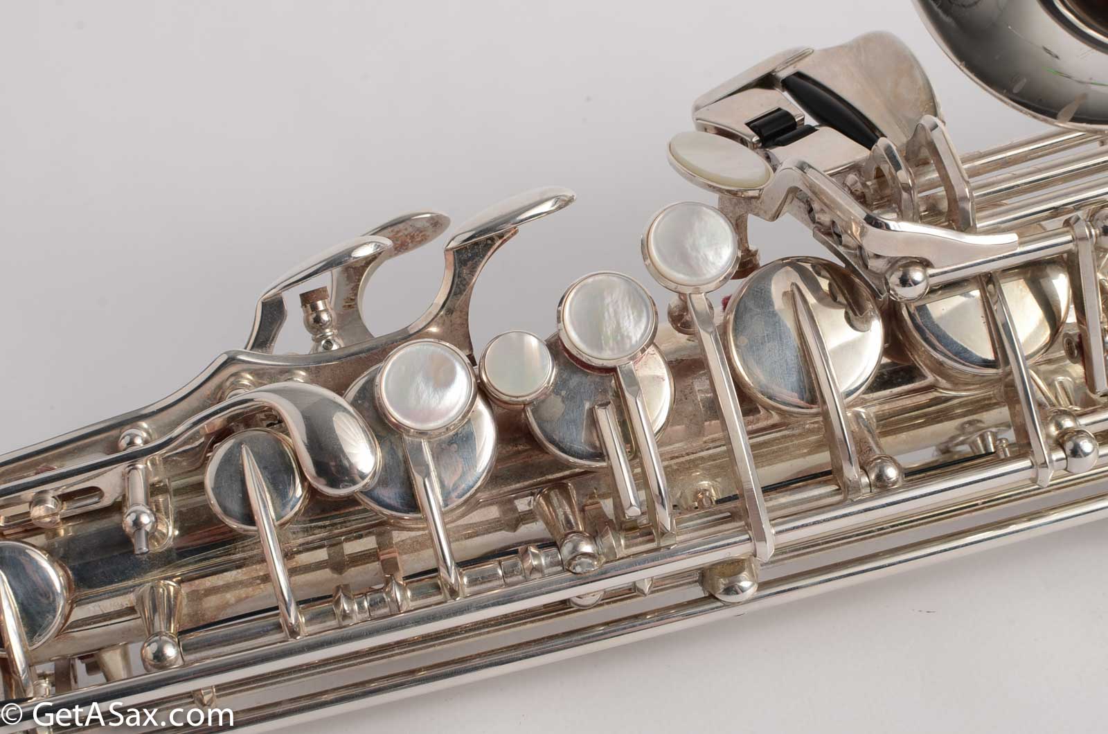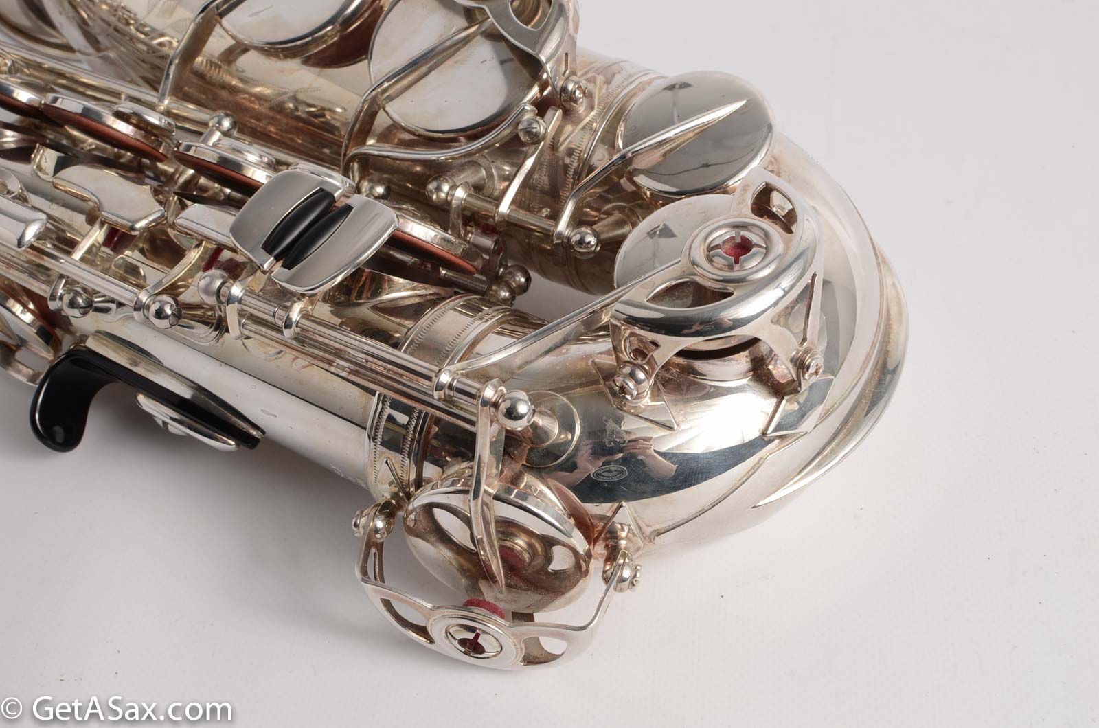 This particular horn came from a pro tenor player and teacher who bought this and never ended up playing it. It has been in the case since it was new, and has rarely been played, and is in nearly new condition. The silver plate upgrade costs +$300 on a new 875EX alto. It is gorgeous and also more durable than lacquer. The pads are in great condition and this horn is totally setup and ready to go as is. It plays wonderfully with a clear, round sound that is medium dark and flexible, depending on what mouthpiece you use. Works great for classical with a classical mouthpiece, and great for jazz with a vintage Meyer, or a Ted Klum Acoustimax etc.