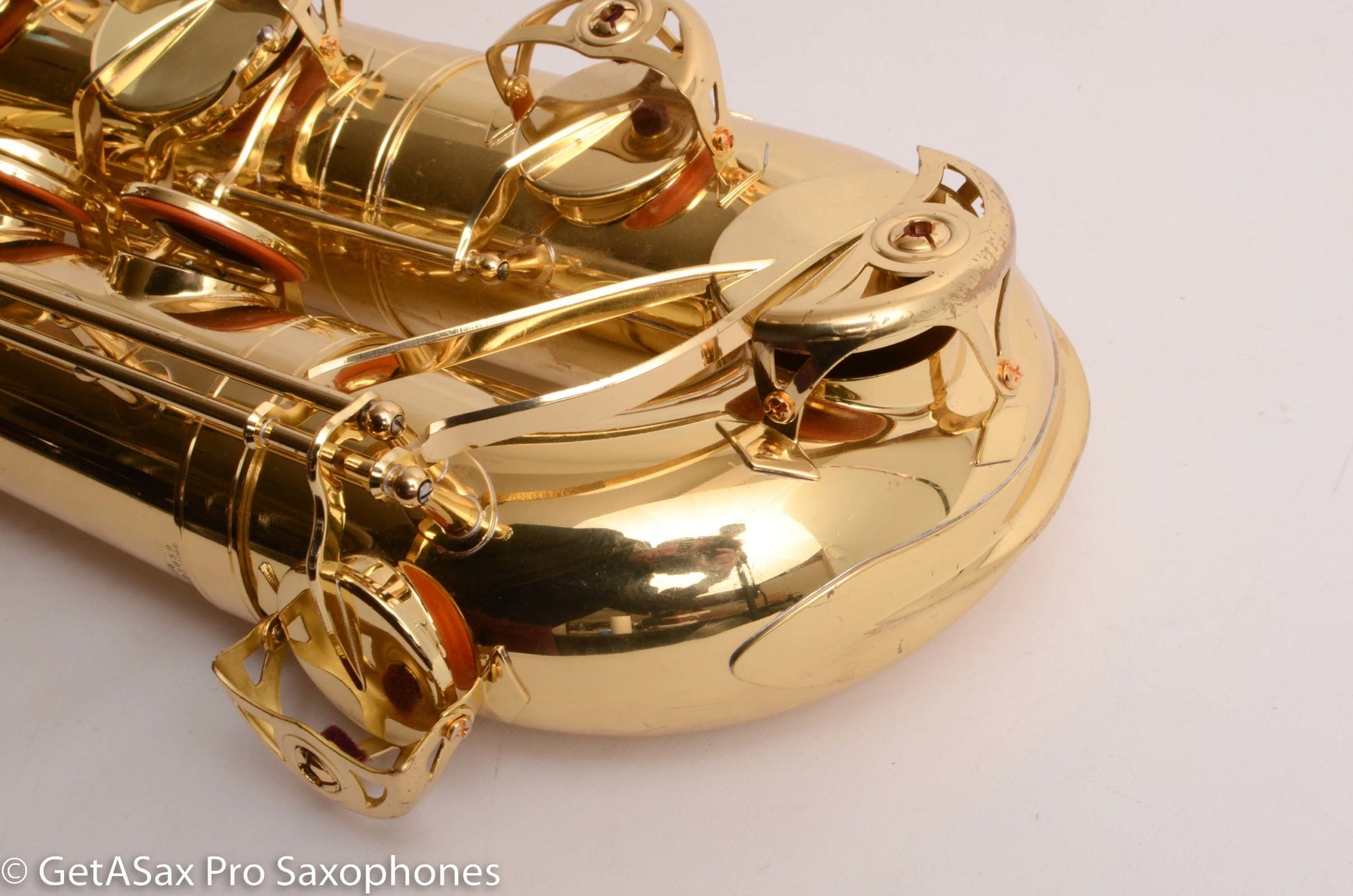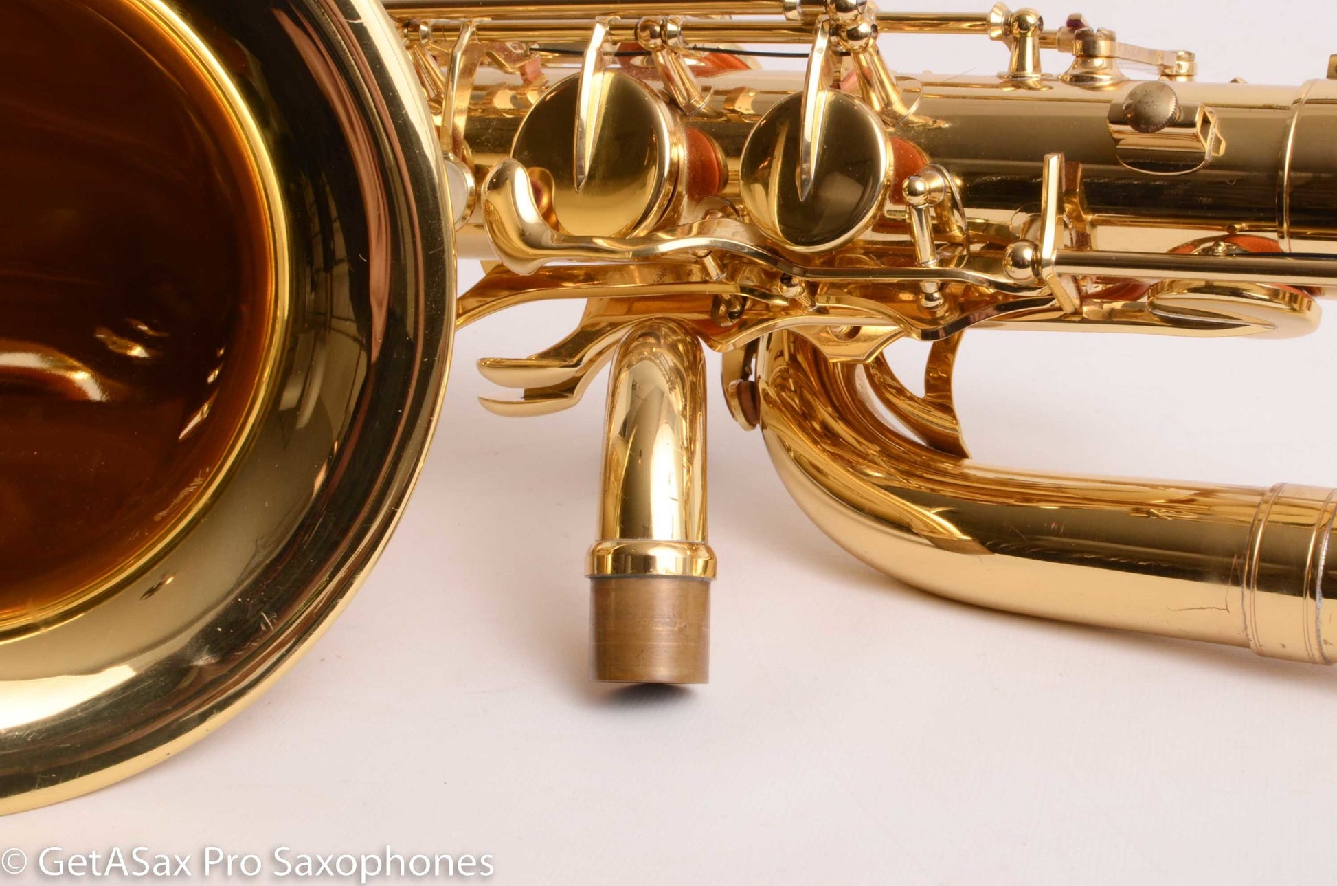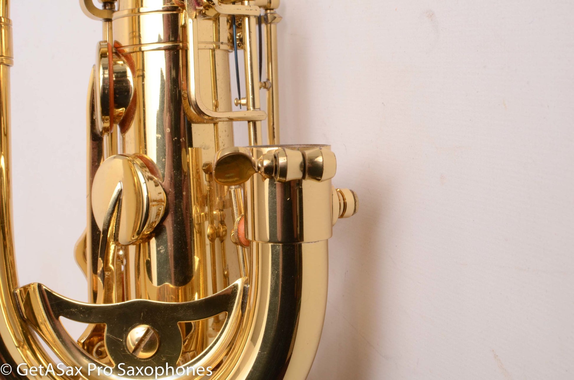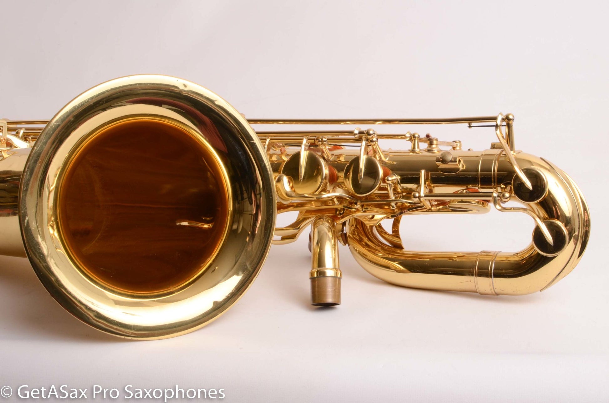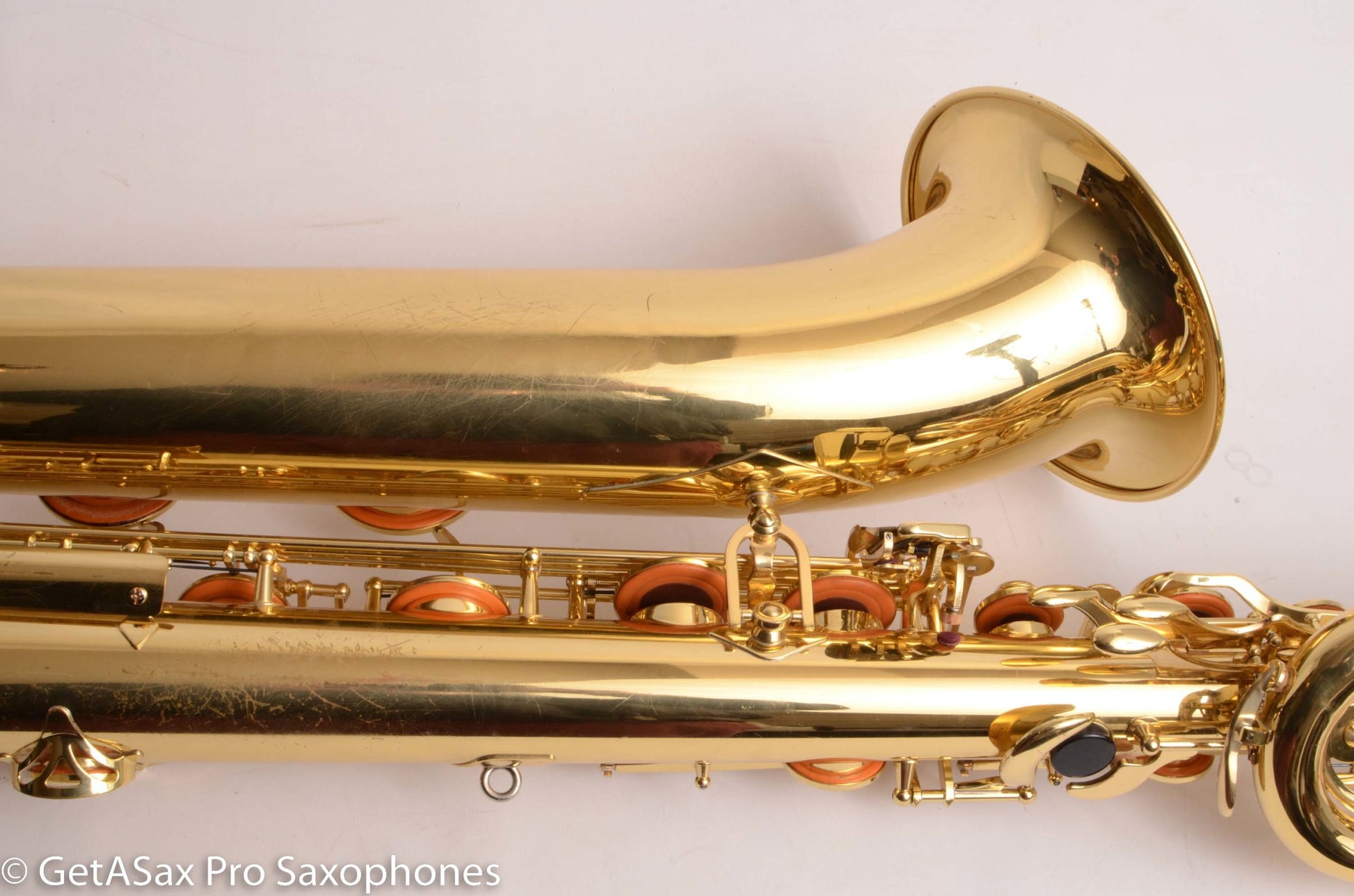 The Yamaha YBS-52 is the best baritone in its price range without any competition. It has a lot going for it: these horns are built to last, and they last forever. They’re easy to keep in good repair, they tune well, they’re easy to play, comfortable under the fingers, and hold their value extremely well. They really have no weaknesses. I think that they’re so good that Yamaha had to come out with new models in order to sell more baritones, as all the 52’s out there are still going strong, haha. Anyway, this is a beautiful example that plays REALLY well and is an excellent value. It had a dent removed from the upper bow, that was done so well that it is hard to see. The pads have just all been carefully checked out/adjusted/replaced as needed, and everything is sealing perfectly and generally a delight to play. It’s hard to find a nice YBS-52 for sale these days, and the new Yamaha 480 intermediate baritone is not nearly as good.