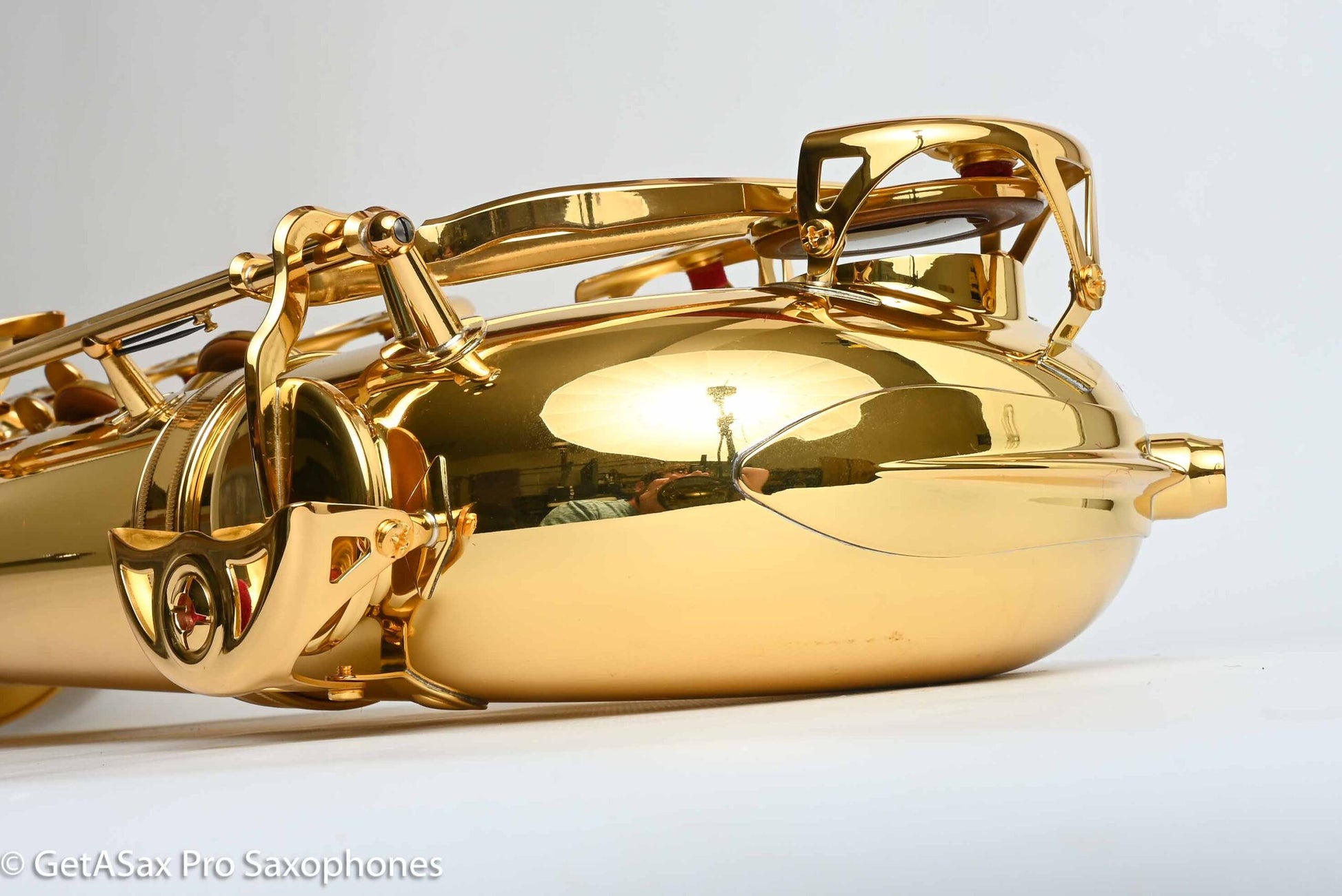 This mint condition, unplayed, latest version Yamaha YBS-62II baritone saxophone is in stock and ready to ship now! This horn came in on trade, so it has the GetASax new horn warranty instead of the Yamaha one, but it’s the same thing for you. The YBS-62ii sets the standard for the best pro baritone saxophone you can buy, and it’s significantly less expensive here than getting a new one elsewhere. The YBS-62ii baritone is a top quality pro horn with great intonation, comfortable keywork, ribbed construction for dependability, high F#, and nice engraving. The latest version case has wheels, which is helpful since it’s a heavy case! If you want to buy a baritone and just play it without messing around, the 62 is the way to go. I also have the floor peg that can go with it if you need one. They are hard to find in the USA.