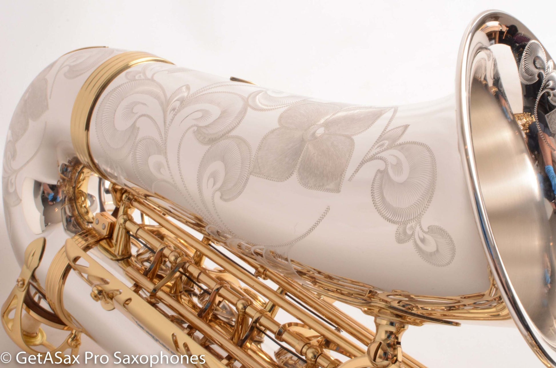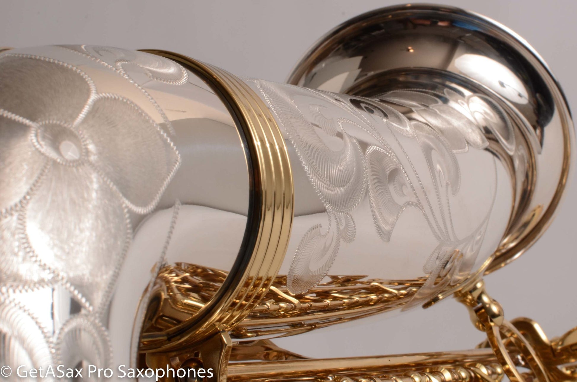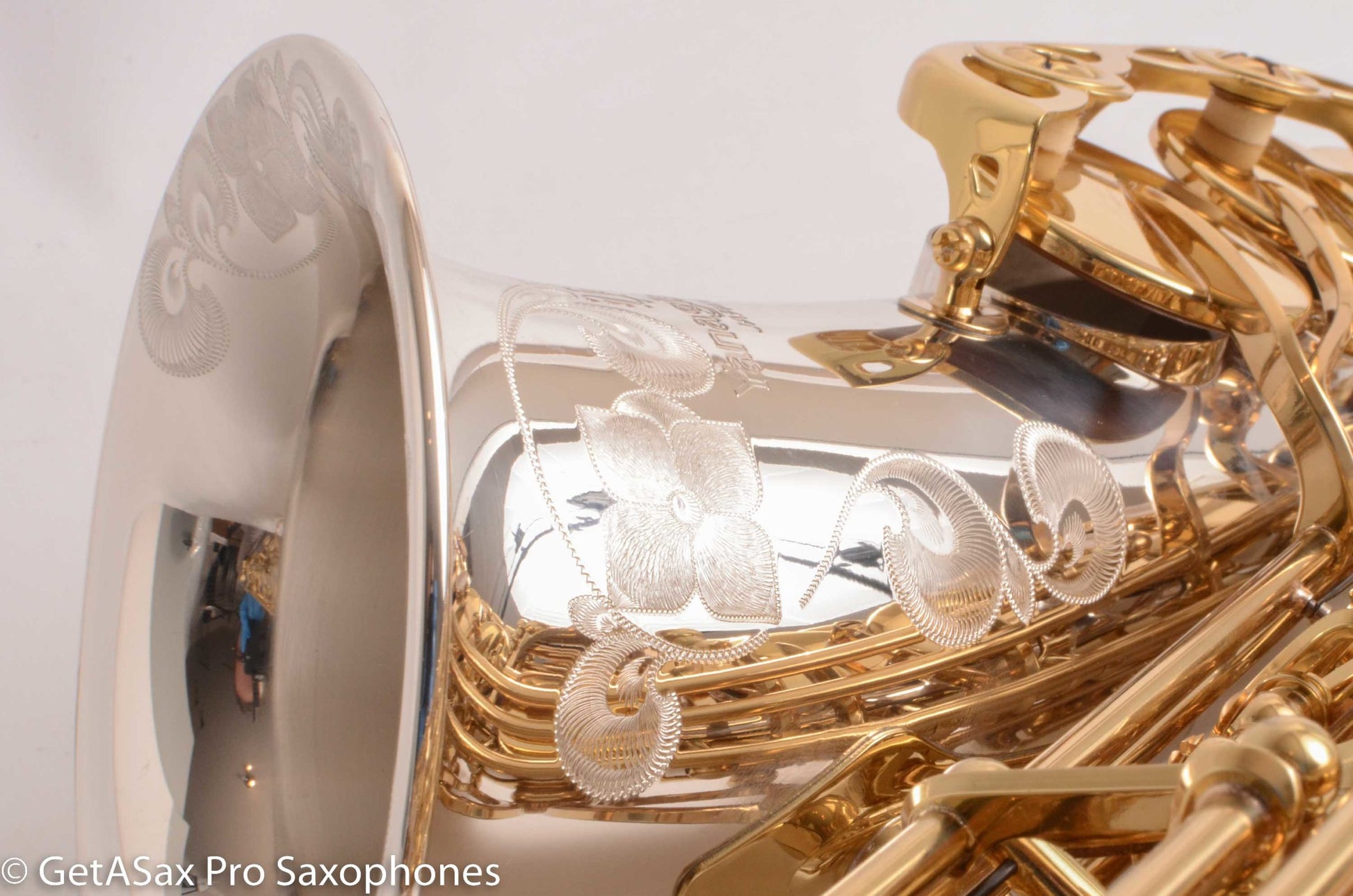 The best of the best from Yanagisawa, the AWO37 in solid silver with full engraving can’t be beat. These are rare, collectible, and usually you have to wait while your special order is filled slowly. I ordered this one 6 months ago and it’s finally here. It also got a thorough new horn checkup when it came it, to make sure that it plays as perfectly as possible! Price is great. You could pay way more and get one without the new horn setup (which makes a significant difference, even on well-built Yanagisawas!).