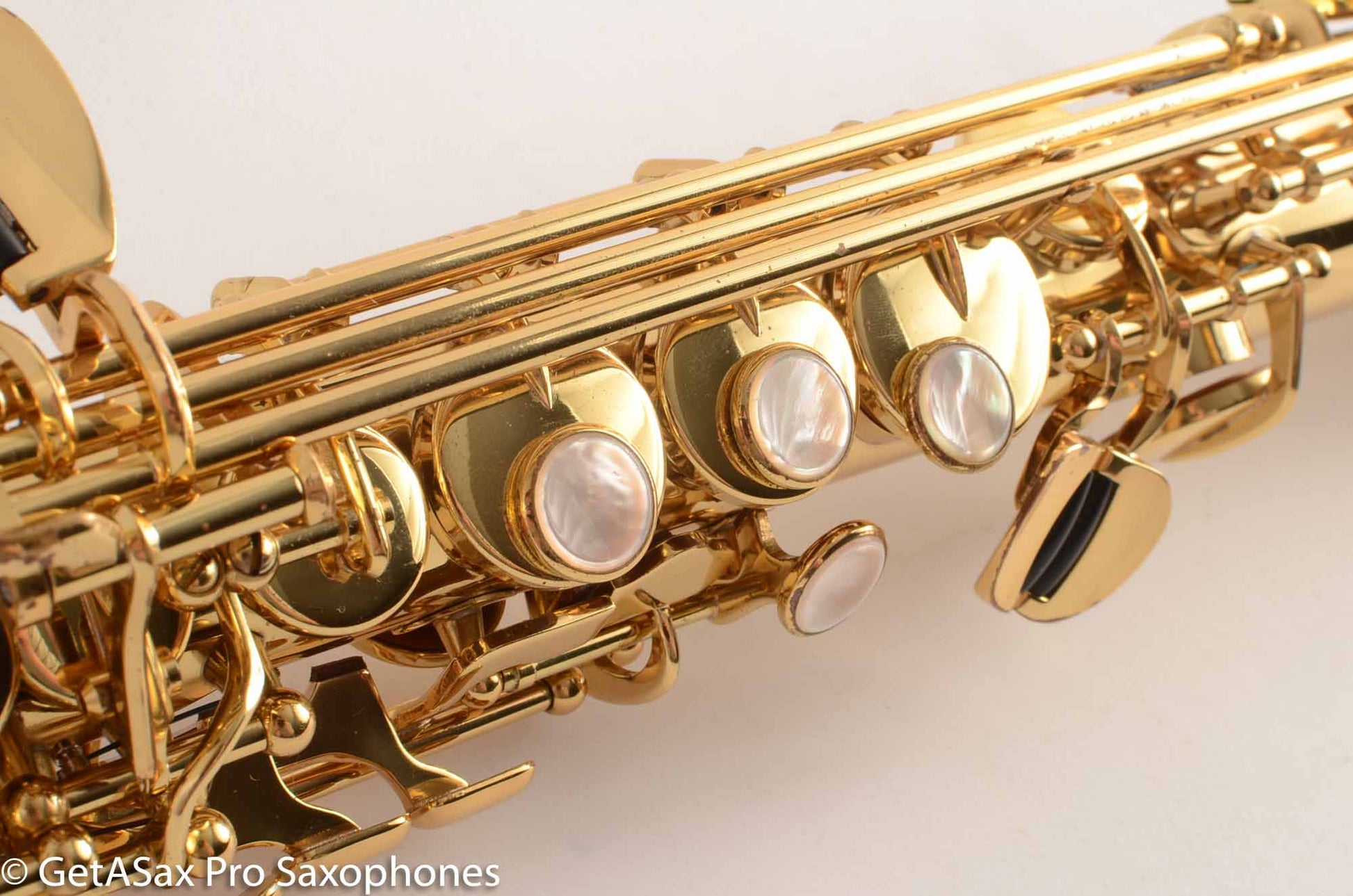 The Yanagisawa S991 is the Acura of soprano saxophones. It is built to extremely high standards, lasts forever, plays in tune, is easy to use. Basically, it does everything well. This horn is in excellent condition with only minor cosmetic wear from regular use. There is no past damage, and it comes in excellent playing condition. It just got a thorough tune up and is playing its best. The Yanagisawa S991 soprano has a rich, warm tone that is pleasant to listen to whether you are playing jazz, classical, or commercial music. I was just playing the Bach 'Little' Fugue in G minor on this soprano, and it really is almost the ideal instrument for the job. The intonation is just right on throughout, and the keywork is super comfortable and fast.