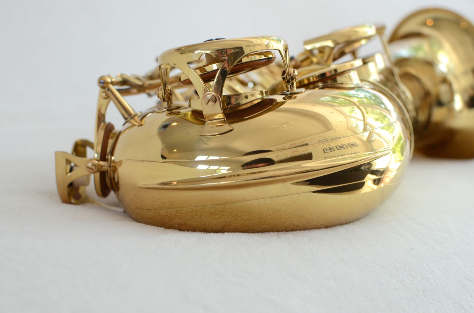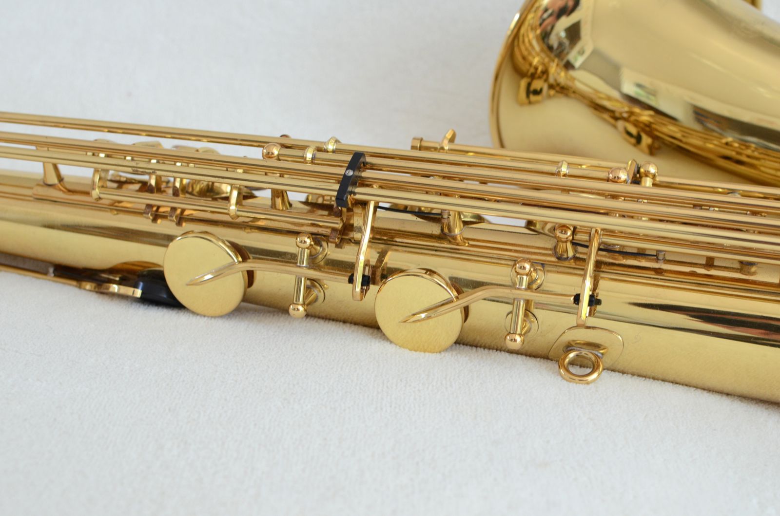This is an excellent example of one of my favorite modern tenors. It's a Yanagisawa T-880, which has ribbed construction and double bell key arms for extra stability. It took me 2 years to find one in this kind of condition. Most of them that you find have been around the block a couple of times.