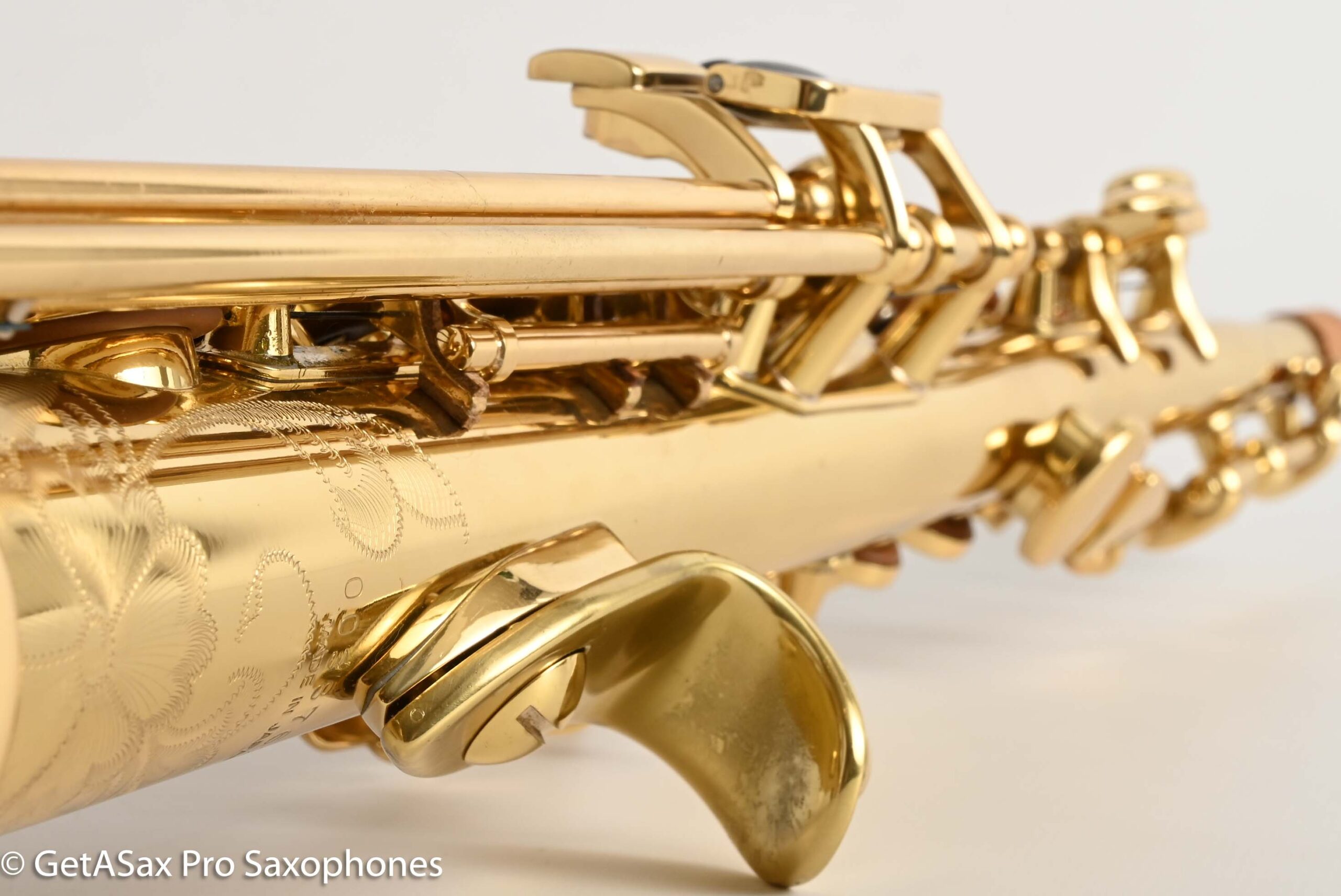 This is a nearly new looking Yanagisawa SN-981 sopranino saxophone in excellent condition. It plays beautifully on the original Yanagisawa mouthpiece, and has a warmer, better in tune tone than really any other sopranino on the market. The only sign of wear I see on this is a little line inside the bell flare either from a stand or from getting bumped on something. It’s not dented now or anything, and the rest of the horn looks brand new. If you’re going to buy a sopranino, this is definitely the one to get. No other sopranino sounds as good or plays as easily as the Yanagisawa SN-981. Only one available!